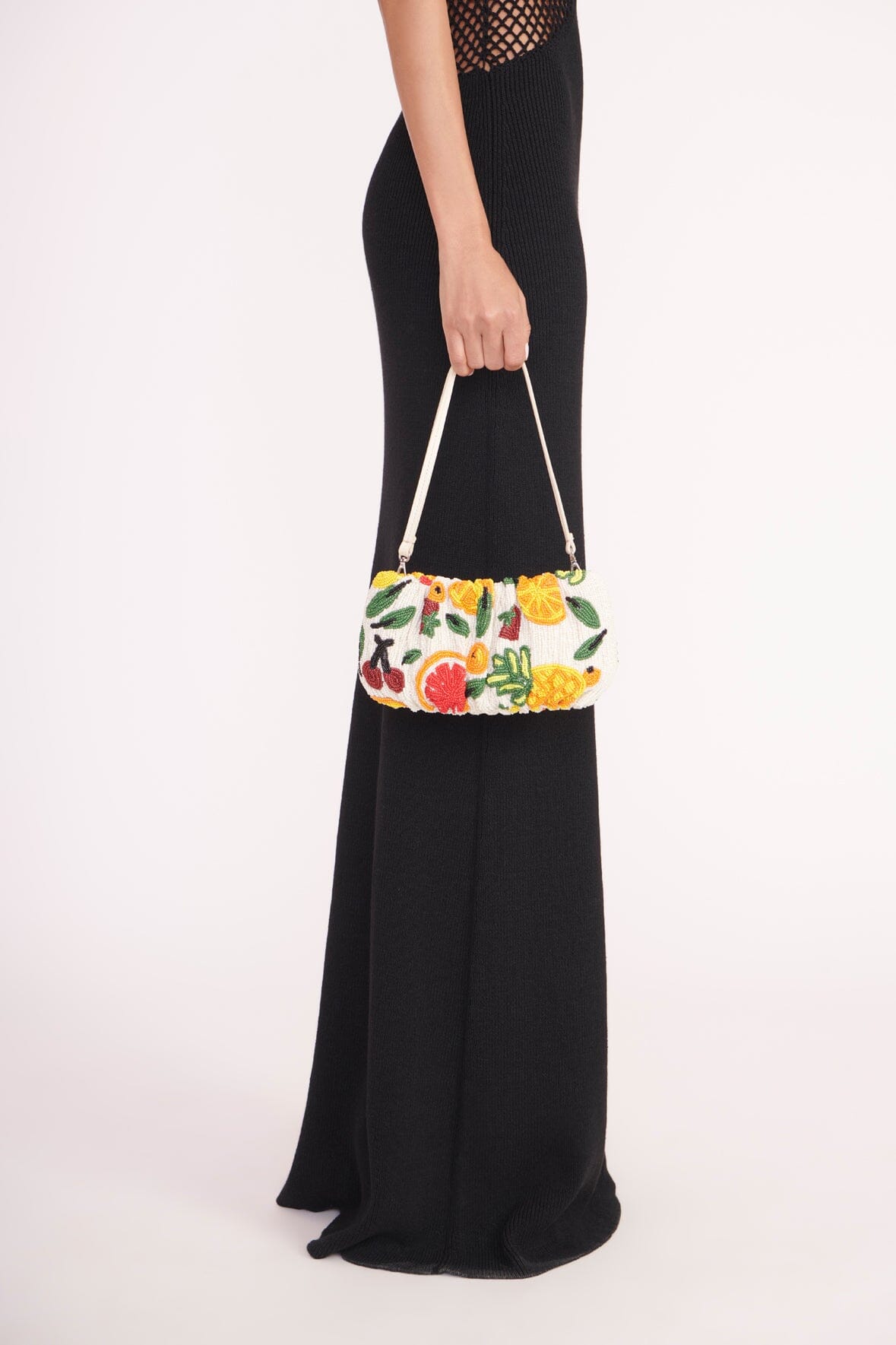 A hand-beaded update to our signature ruched bag. The Beaded Bean is a convertible bag that can be worn as a shoulder bag, wristlet or clutch.