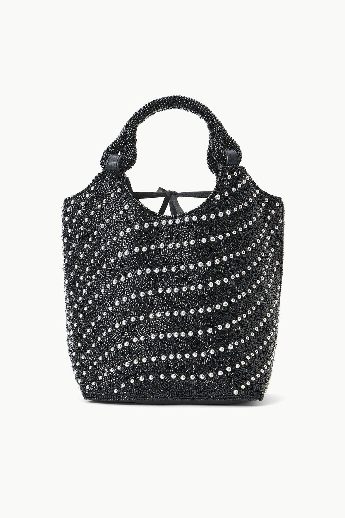 The perfect day-to-night bag, the Cote is back in a hand-beaded wavvy pearl pattern. This style features an interior satin lining and tie closure.
