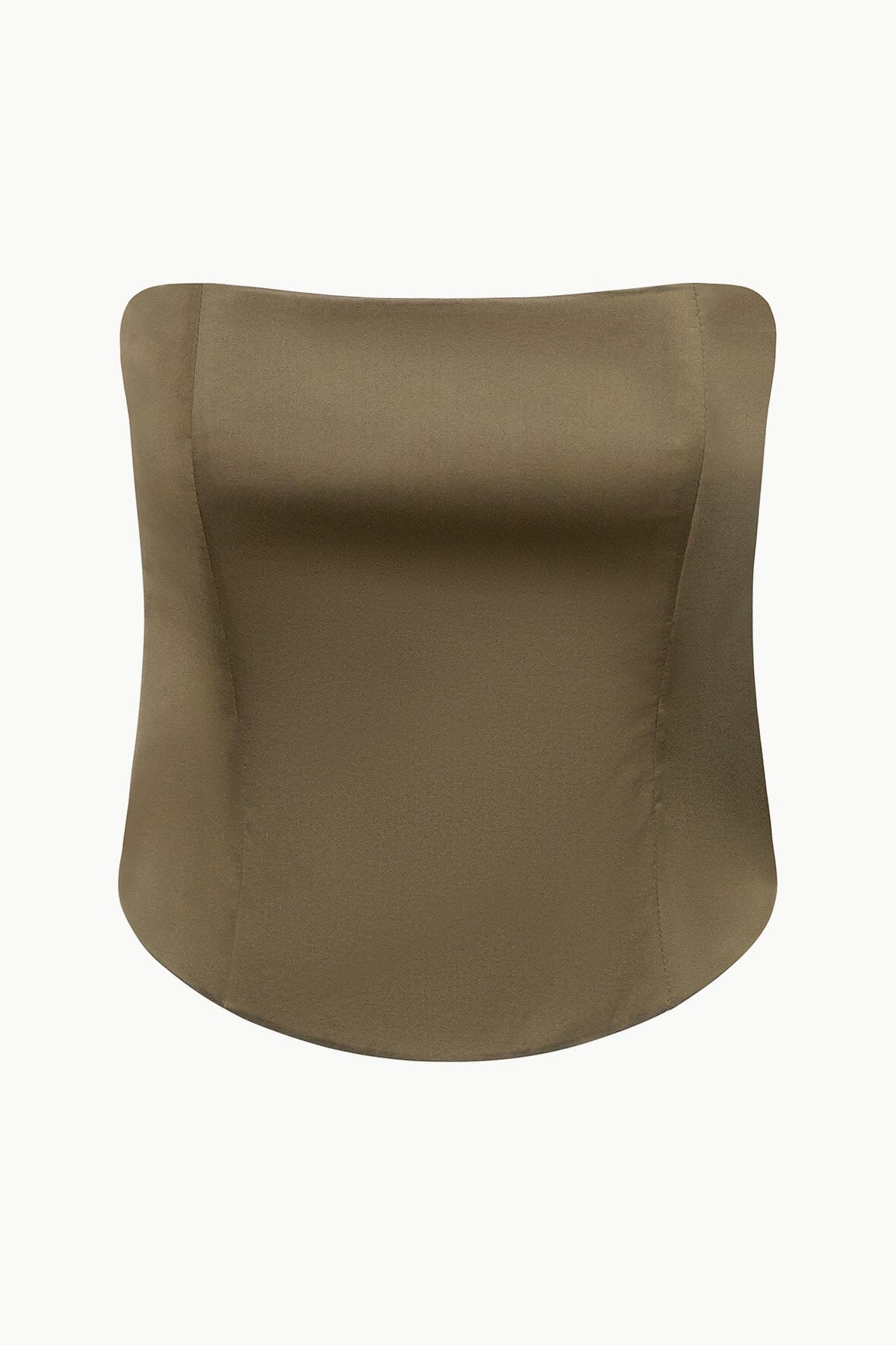 A bustier-inspired top made from a slightly stretchy silk fabric, the Brunswick features interior boning and a center back zipper. Pair it with the Odin Silk Skirt for a matching set.