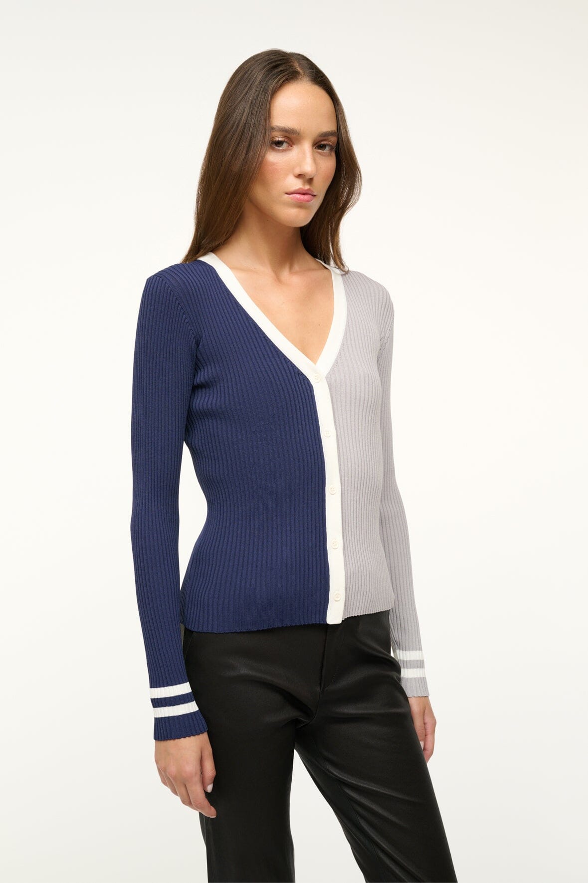 Our favorite cardigan, the Cargo Sweater, is updated to support your favorite NFL teams. The NFL STAUD Cargo Sweater is made out of our stretchy, comfortable compact rib knit fabric, and can be worn buttoned or unbuttoned. This special capsule features our signature color blocked pattern and a NFL team logo on the back.