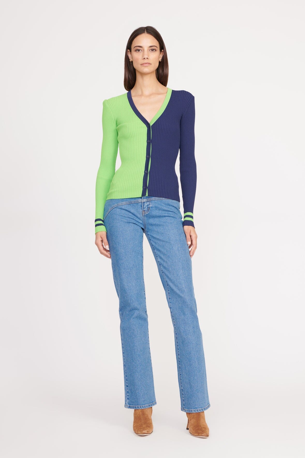 Our favorite cardigan, the Cargo Sweater, is updated to support your favorite NFL teams. The NFL STAUD Cargo Sweater is made out of our stretchy, comfortable compact rib knit fabric, and can be worn buttoned or unbuttoned. This special capsule features our signature color blocked pattern and a NFL team logo on the back.