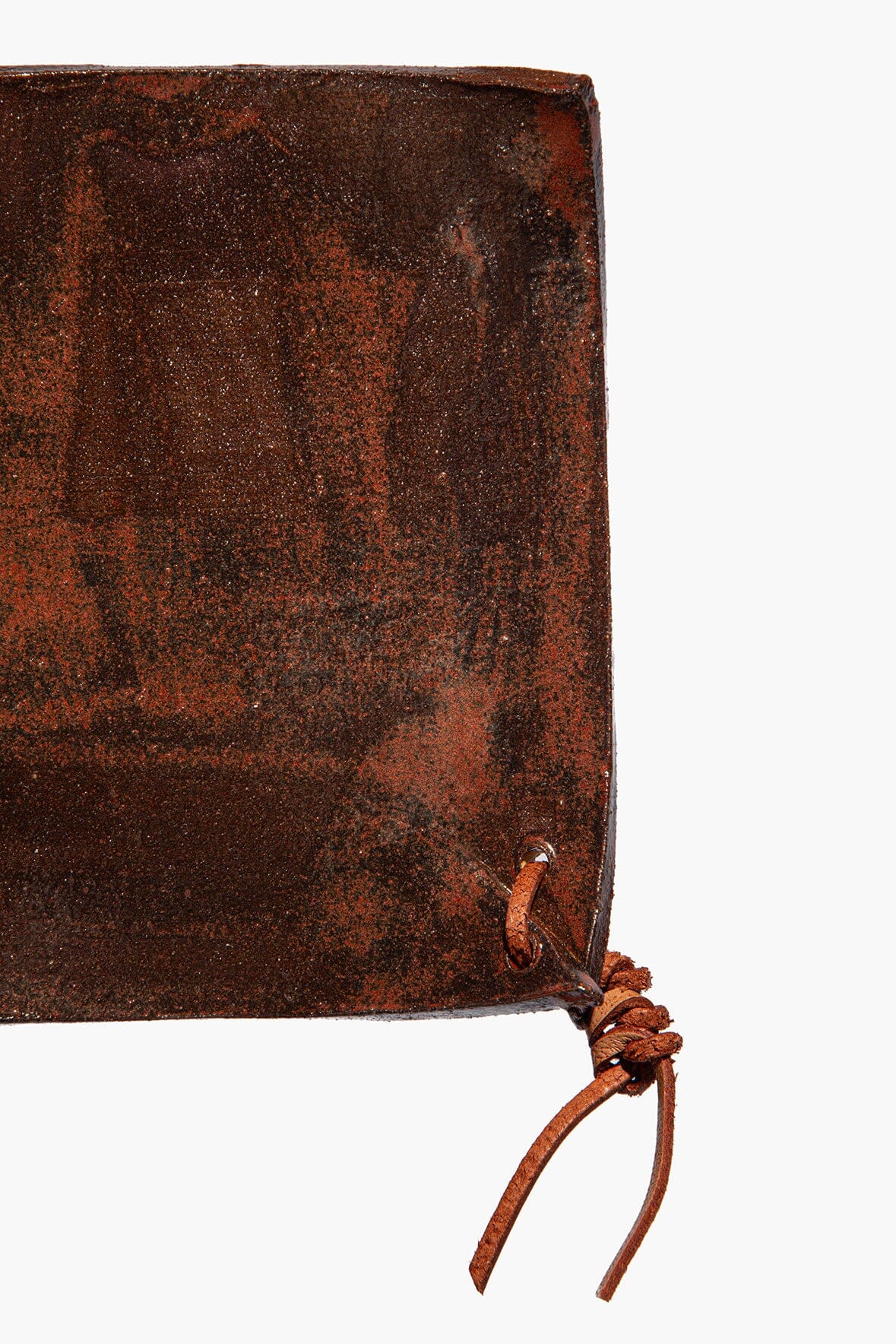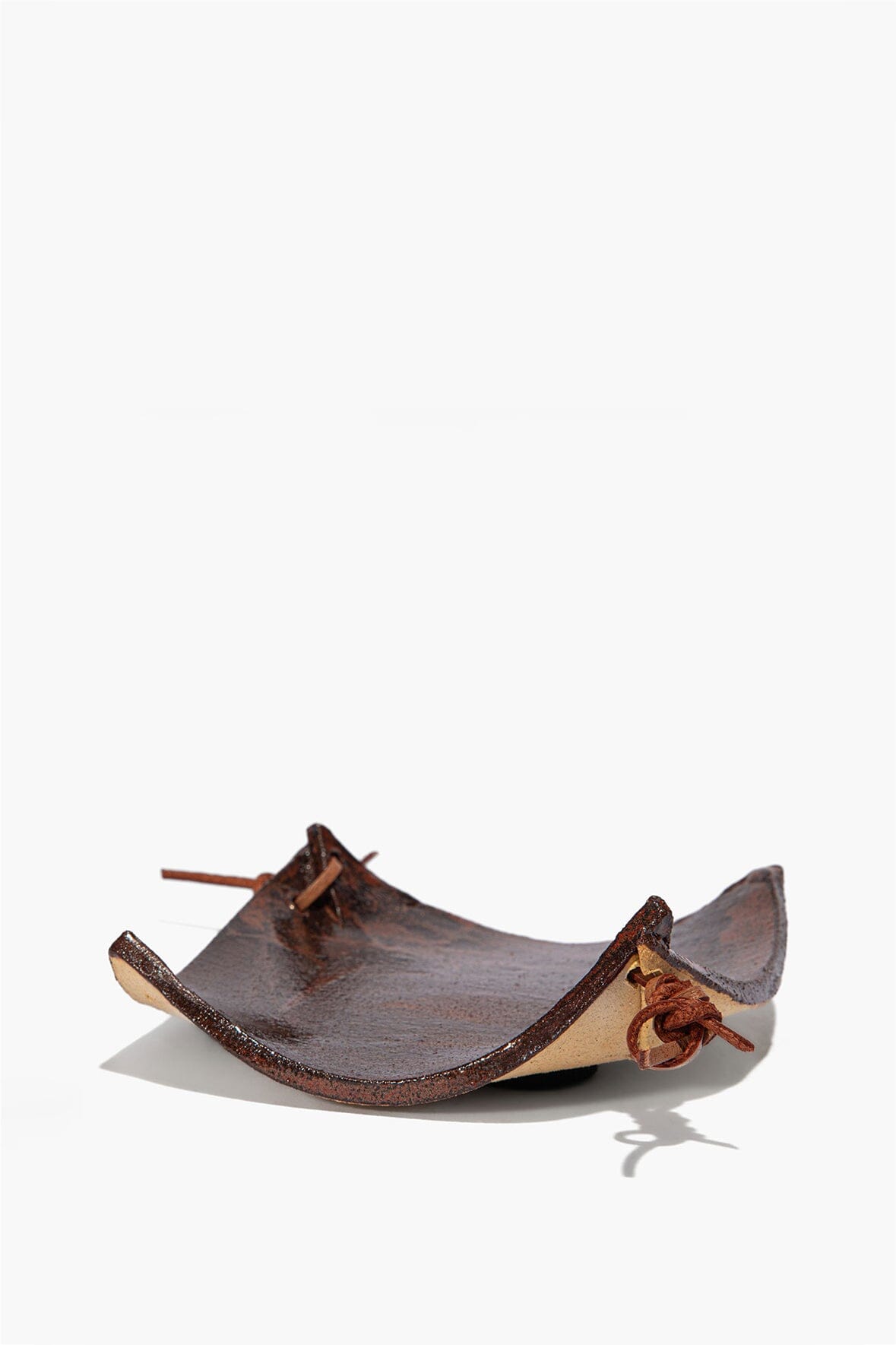 Rich ceramic coasters formed in softened geometric silhouettes create a natural resting place for your favorite cocktail or morning coffee. Arranged together, they sit beautifully as a sculptural presence on the table. Each coaster is brushed and finished with a sunbaked glaze, creating perfectly imperfect variation across the surface, while braided brown leather introduces tactile contrast and anchors the design in organic refinement.