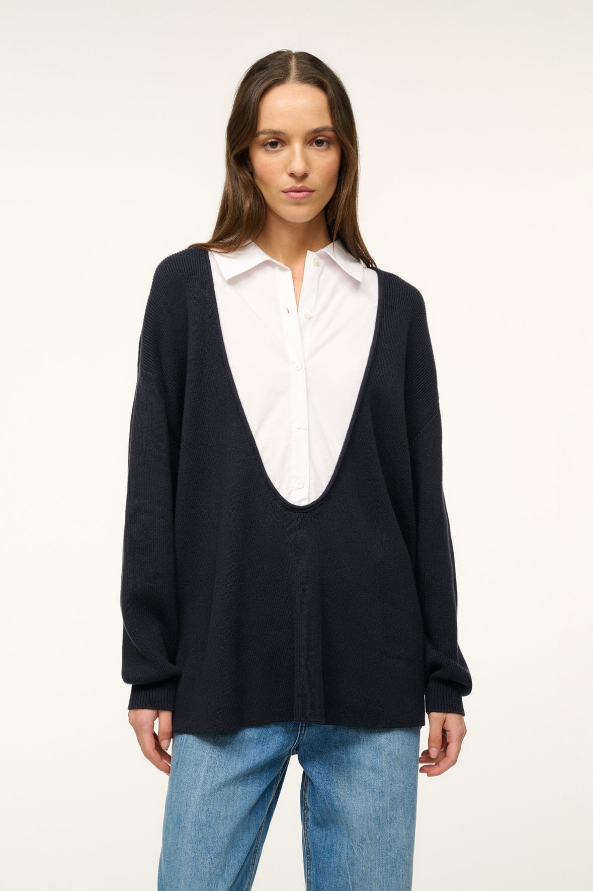 A woven shirt and sweater combo made from a cotton cashmere blend, the Coast Sweater offers a relaxed fit and front button placket detail.