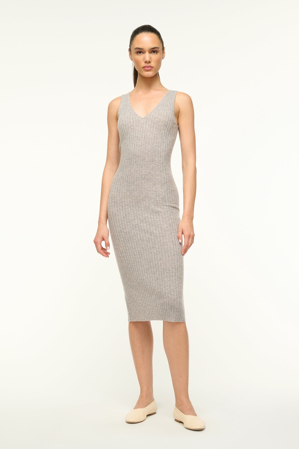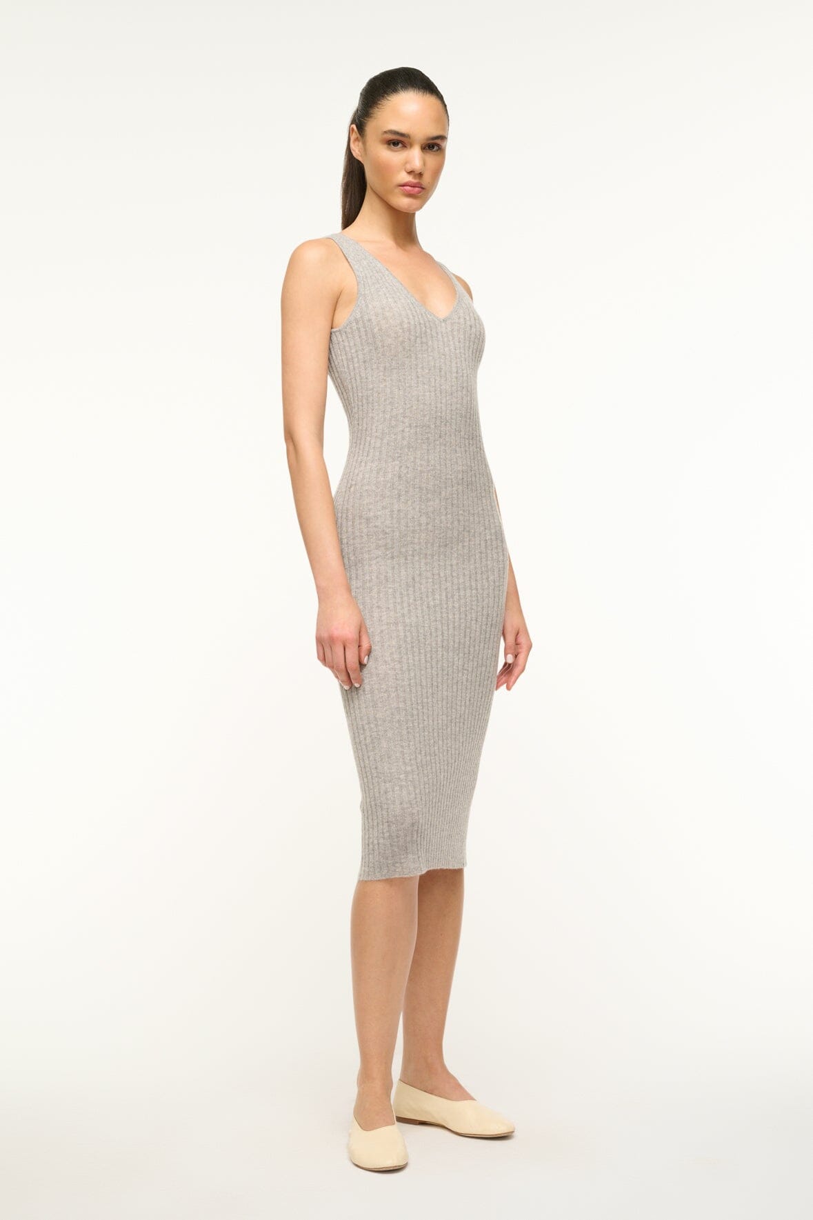 The Dana Dress is a sleeveless dress constructed out of a rib knit cashmere. This style pairs perfectly with our cashmere Shoko & Cargo cardigans.