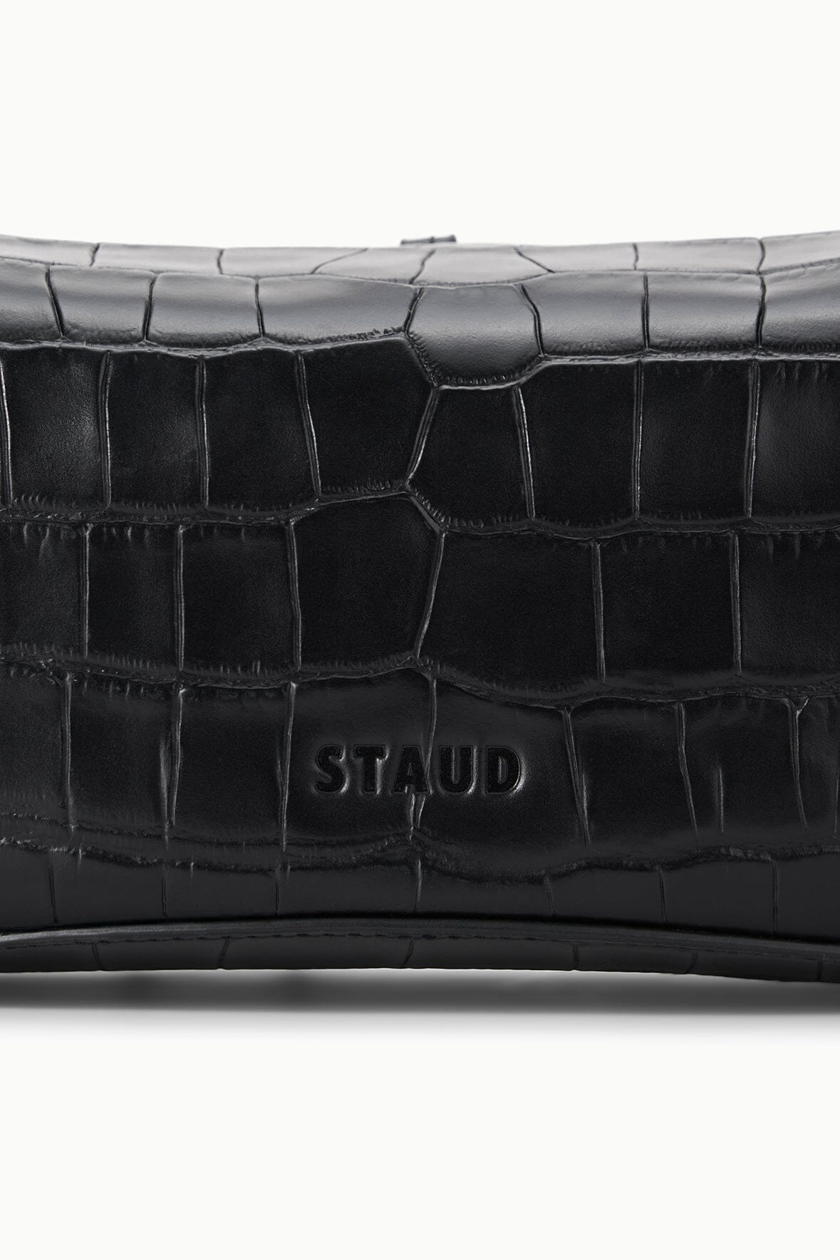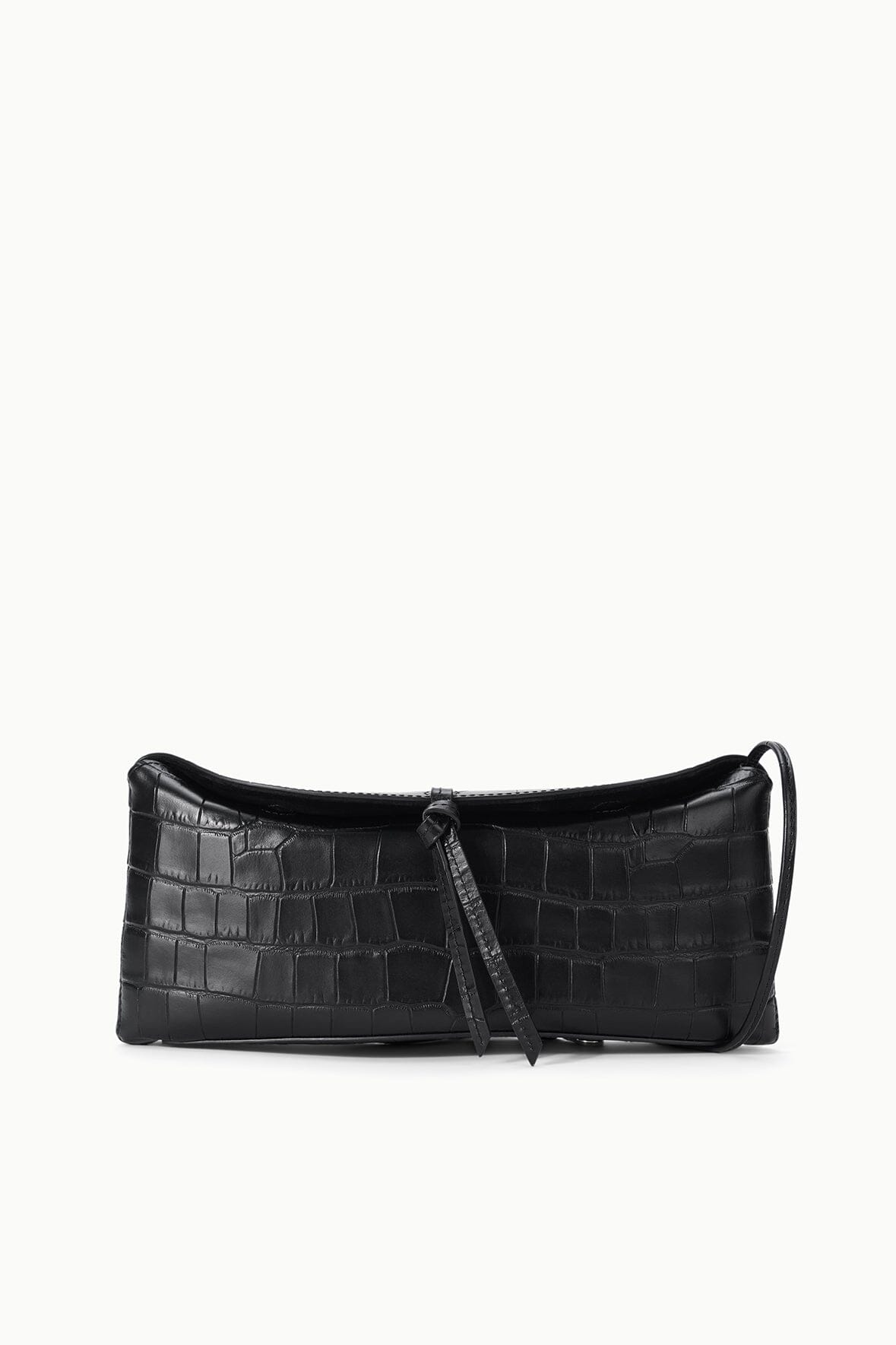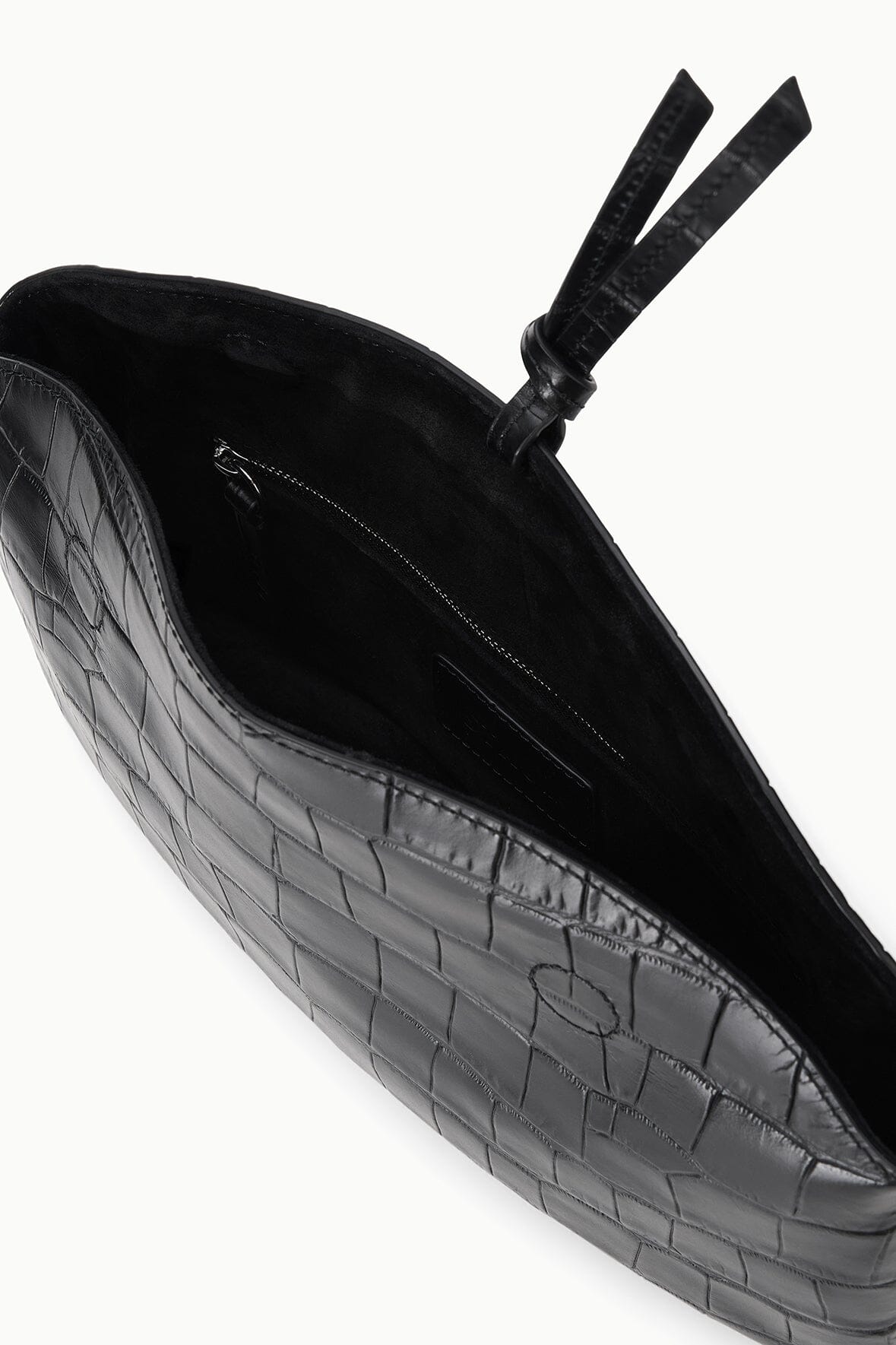 The Eve is a structured, crocodile embossed clutch with an envelope closure and our signature Maude knotted tie detail. It features a delicate leather detachable shoulder strap.