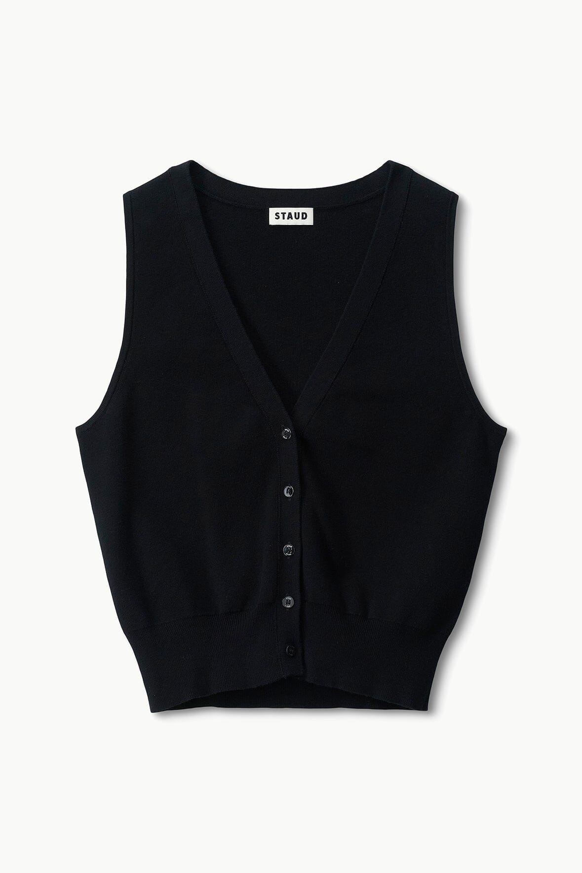 The Ficus Sweater Vest features a v-neckline and a front button placket. This style is crafted in our cotton cashmere blend.