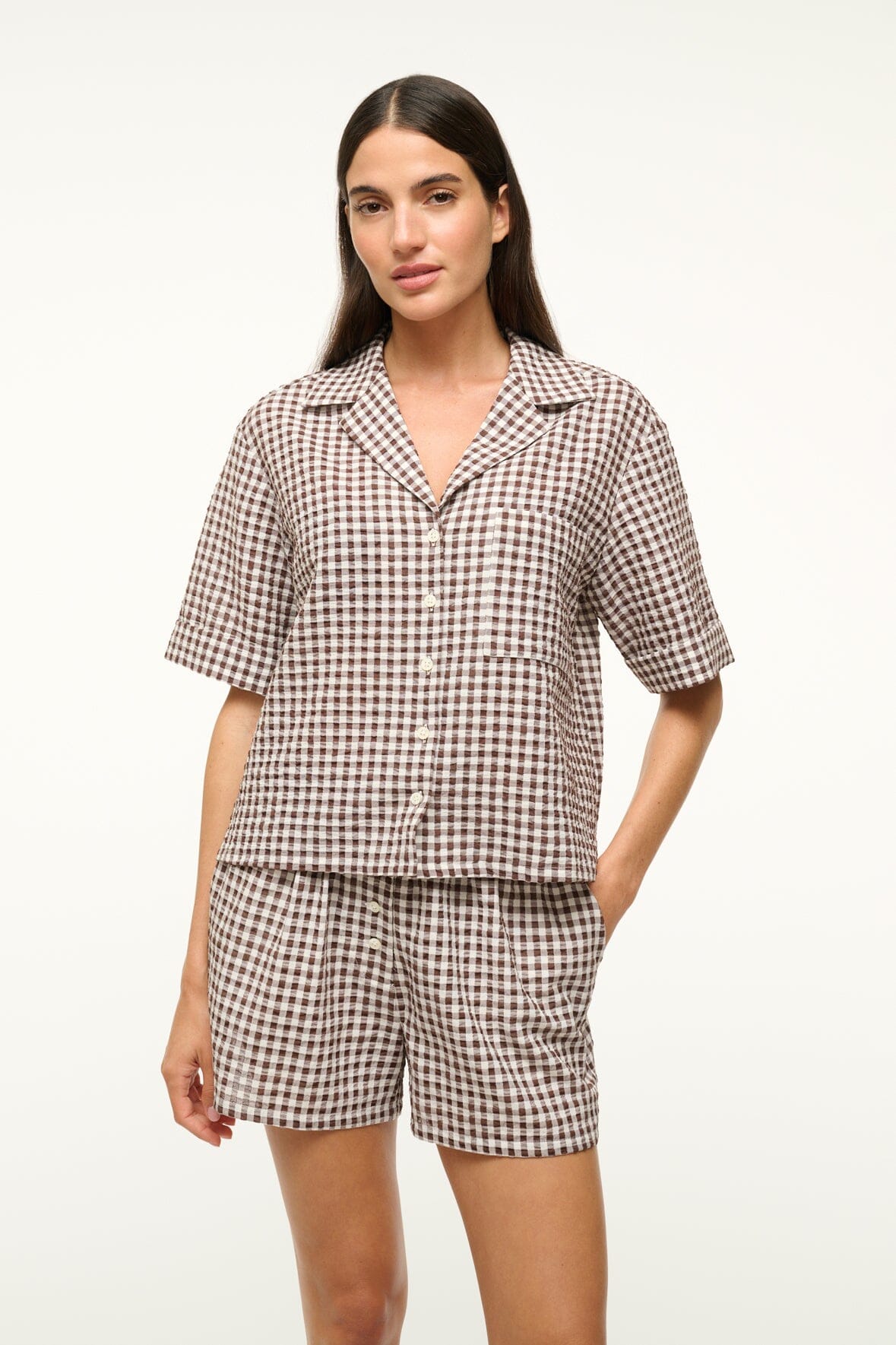 GABI COVERUP SHORT DARK CHOCOLATE GINGHAM