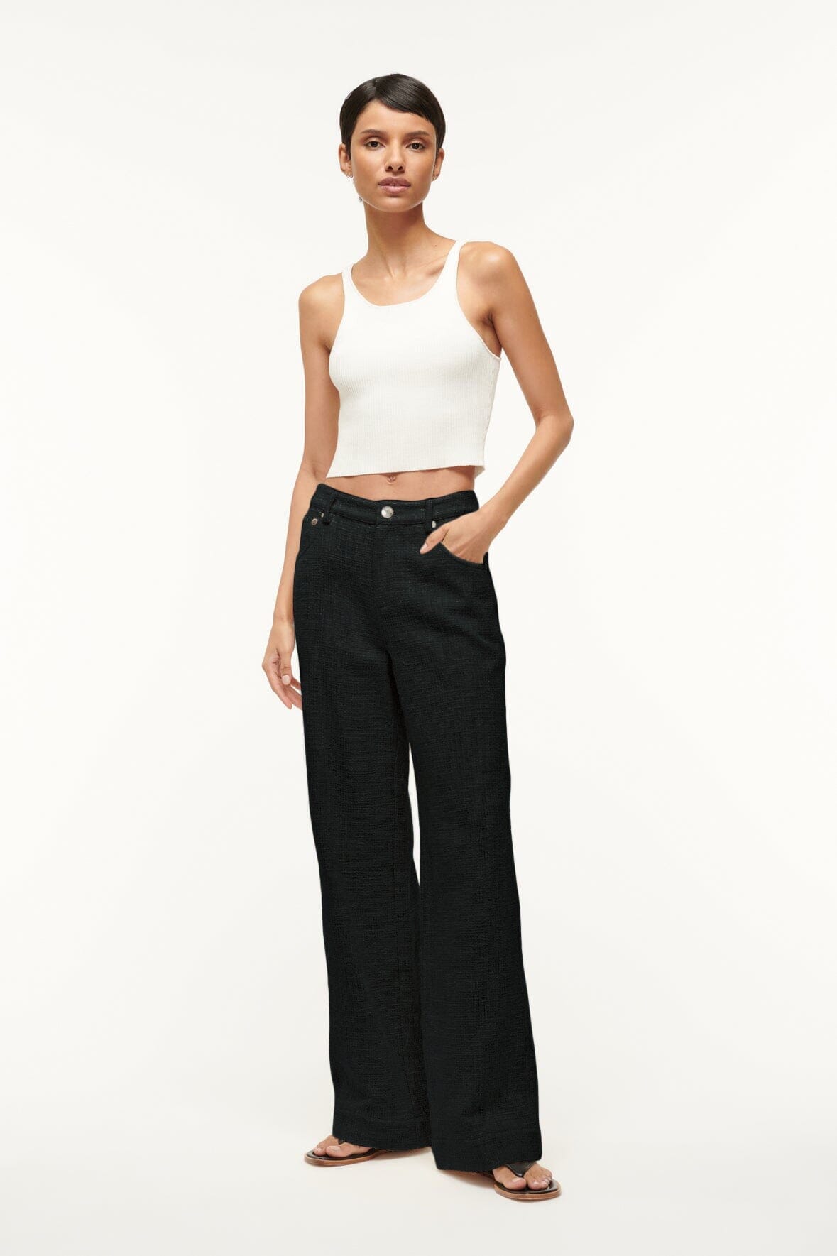 A low rise 5-pocket tweed pant, the Grayson features a wide leg and zip closure. This style offers a relaxed fit, we recommend taking a size down if a fitted look is desired. Wear as a coordinating set and pair with the matching Silvia Top.