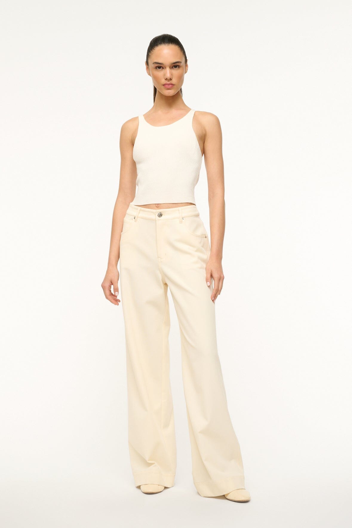 A low rise 5-pocket twill pant, the Grayson features a wide leg and zip closure. Wear as a coordinating set and pair with the matching Silvia Top.