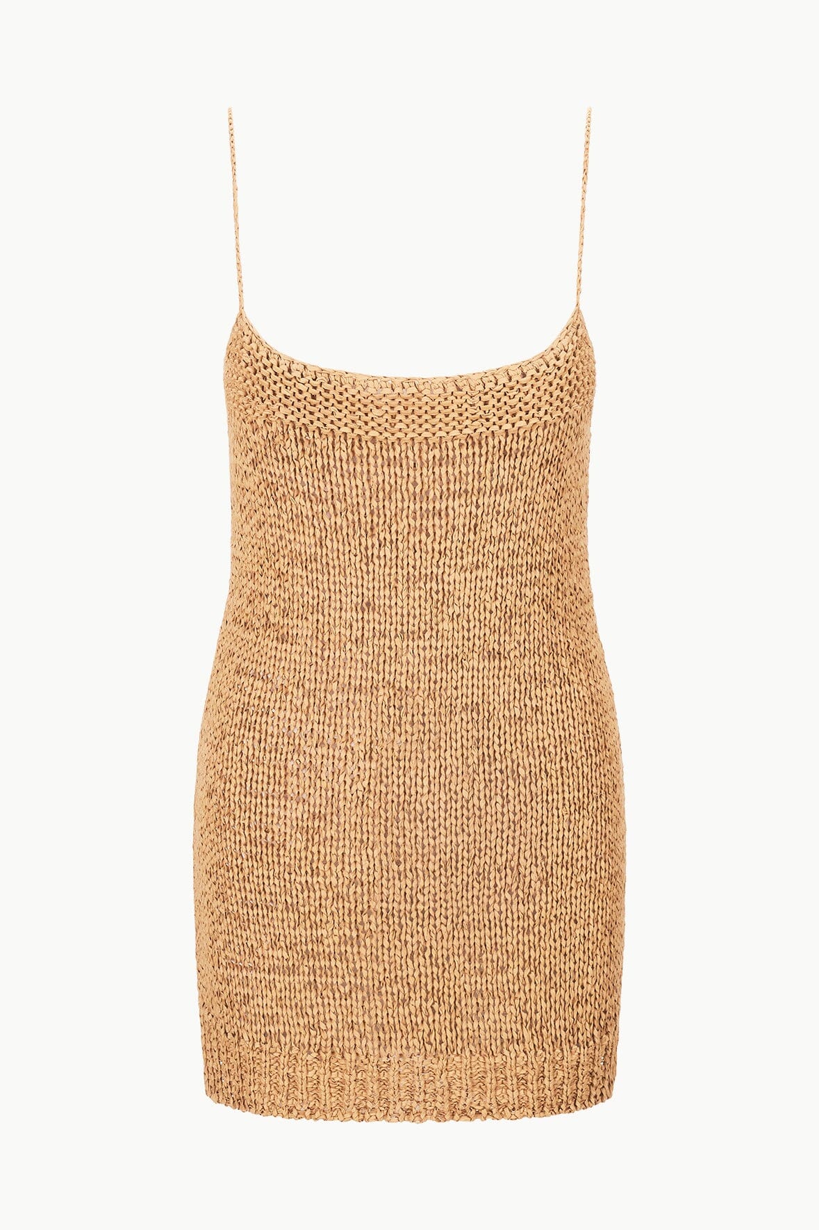 The Haze Mini Dress is a relaxed spaghetti strap dress made in a textured yarn.