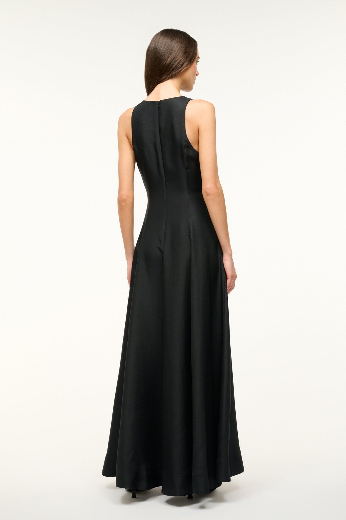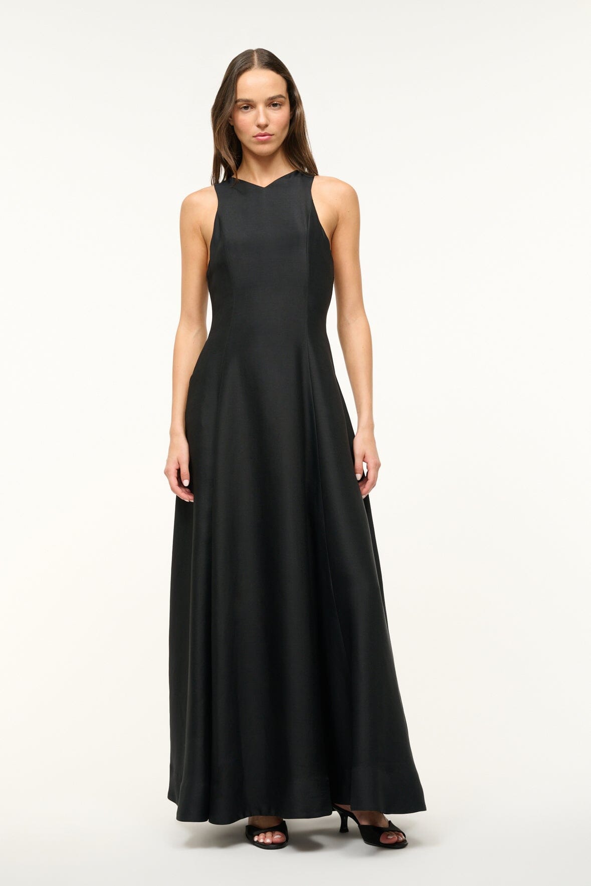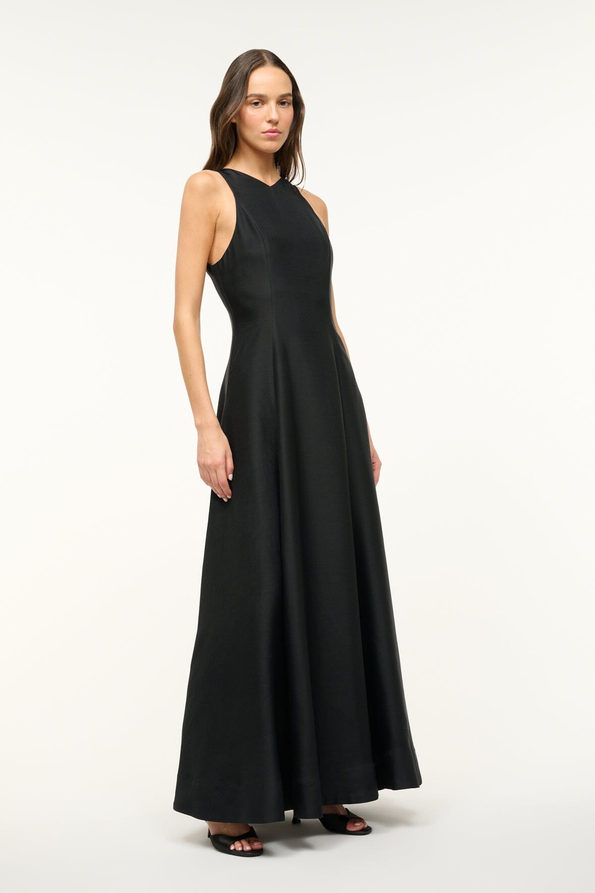 The Heike Dress is a new maxi dress perfect for a special event or cocktail occasion, featuring a high v-neckline, a full skirt, and side pockets. This dress is crafted in a silk wool and can be paired with our matching Joni Shawl for additional coverage.
