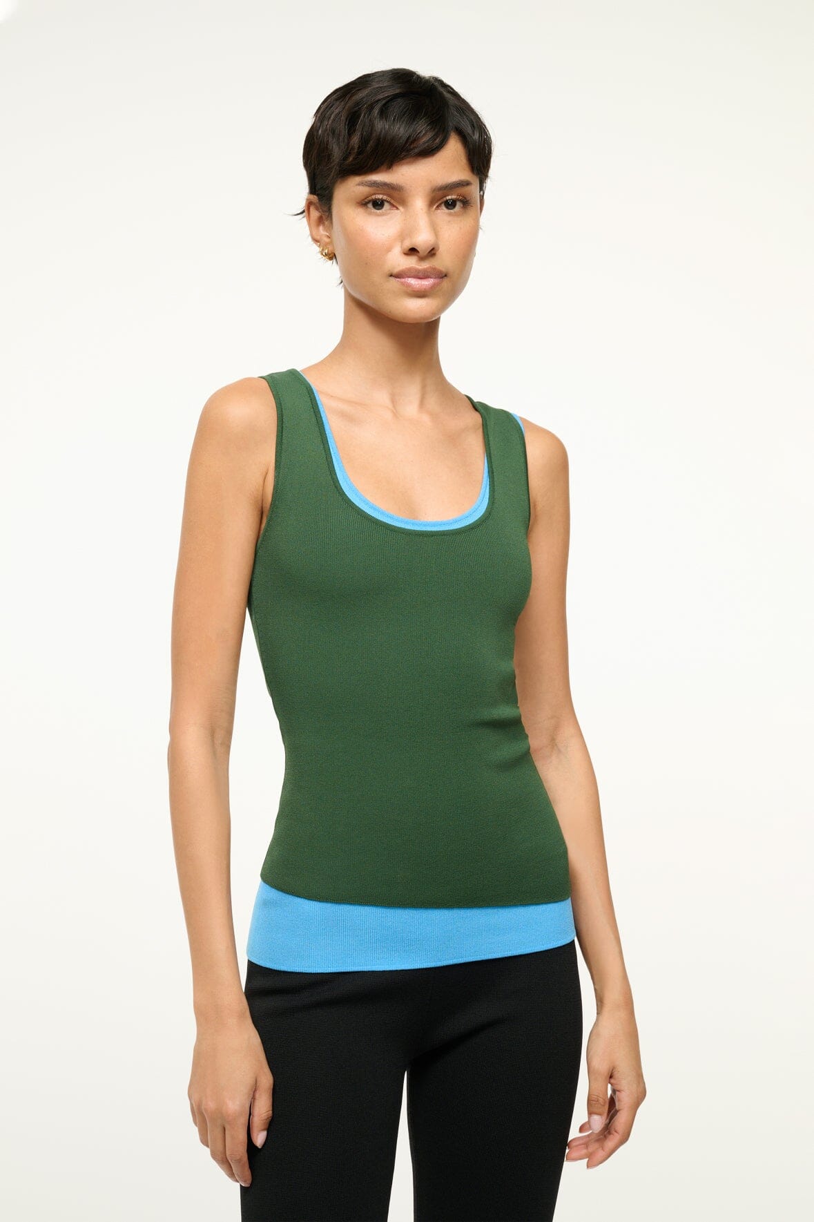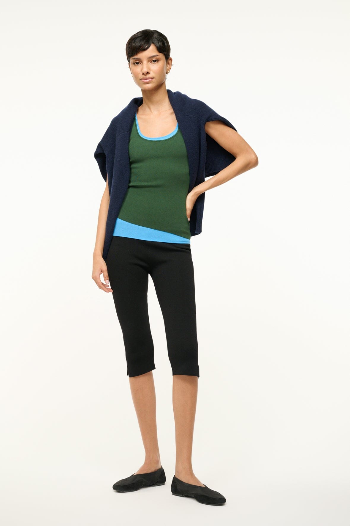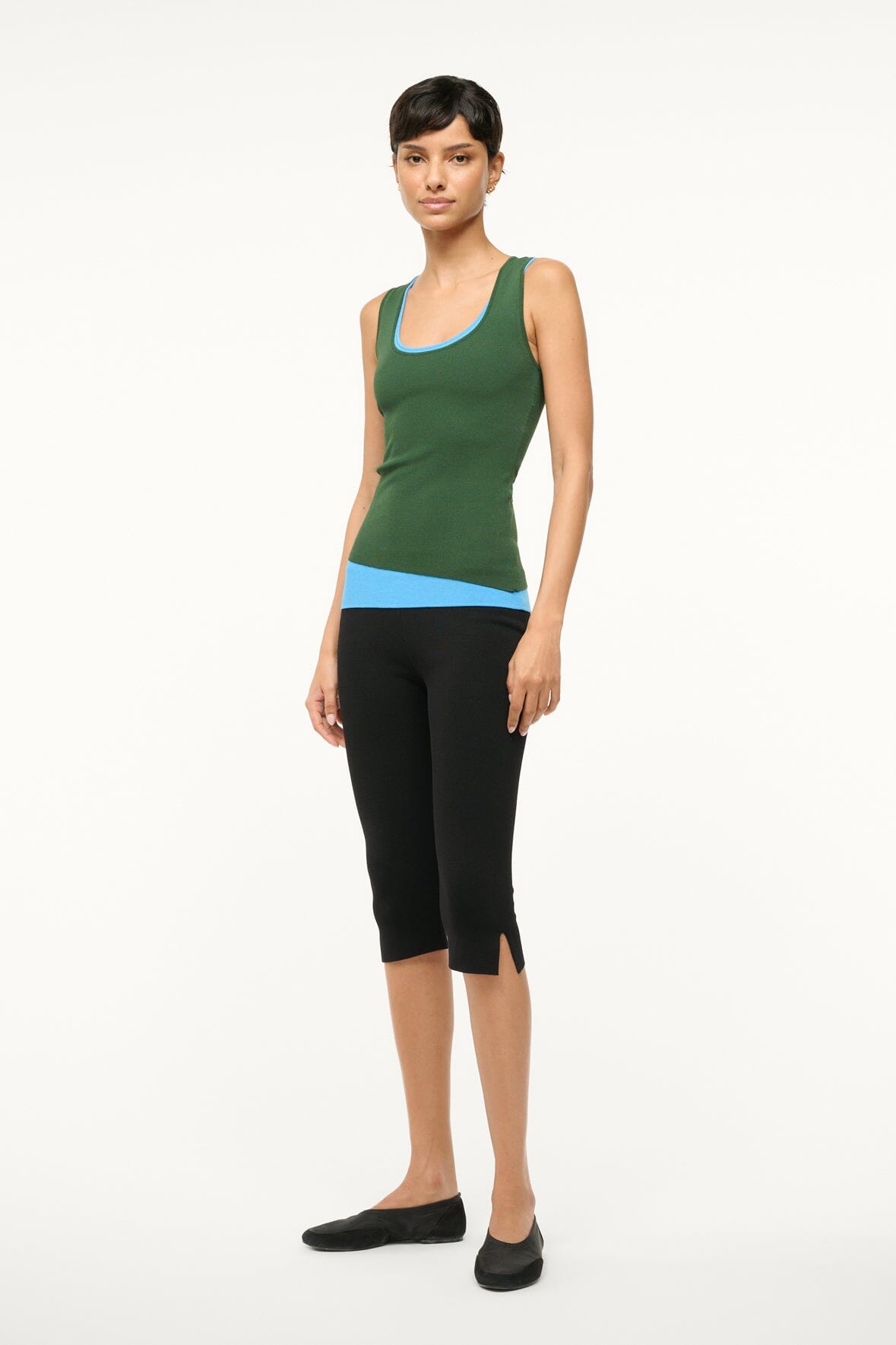 The Hermosa Tank features a scoop neckline and has an asymmetrical layered effect at the waist.