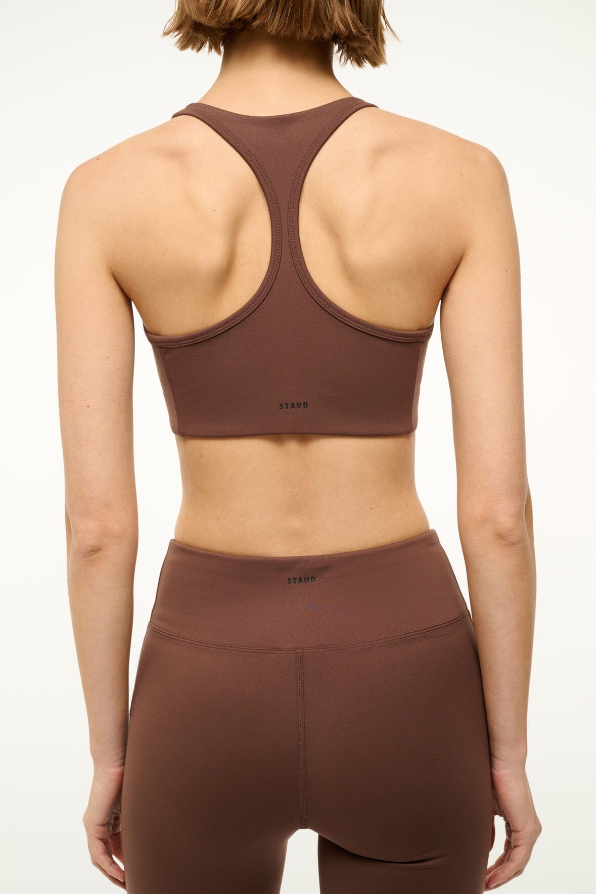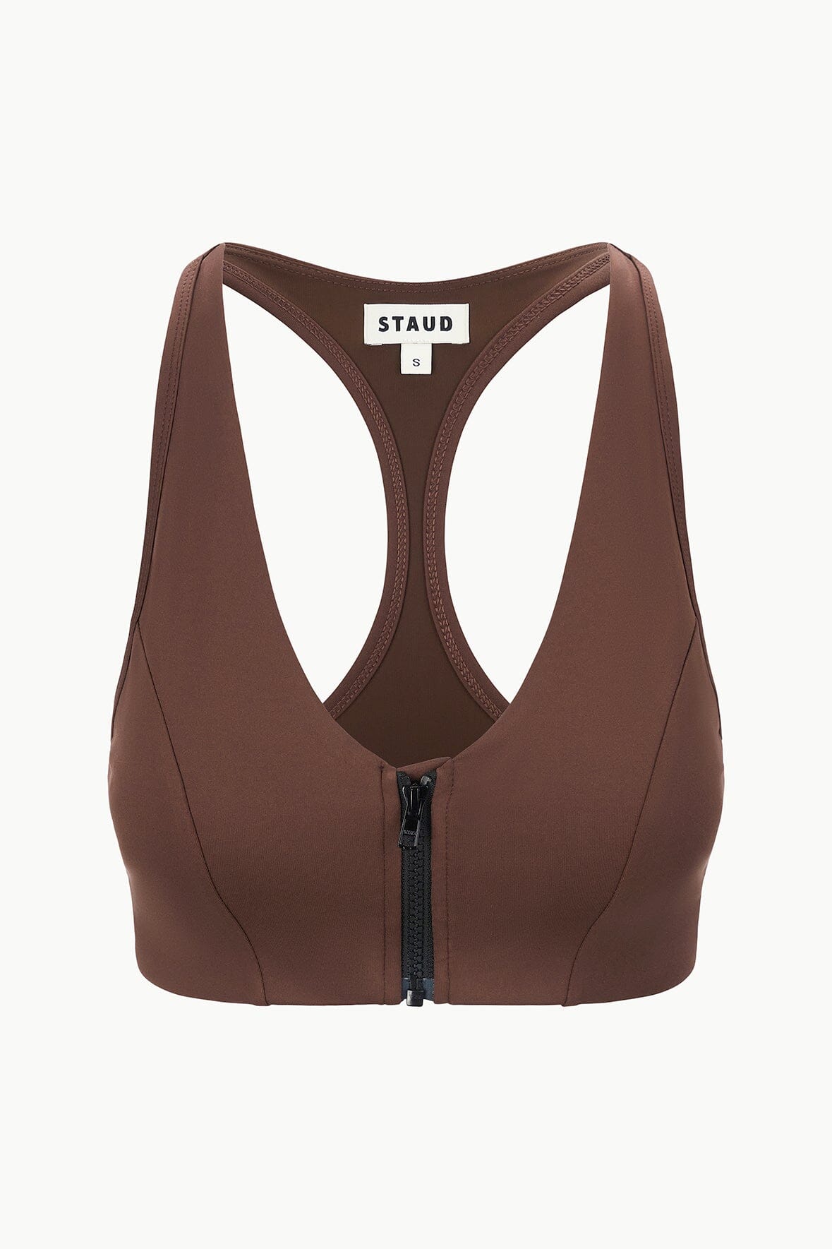 A halterneck bra made out of stretchy shapewear, the Interval Top features a v-shaped neckline and zip-front closure. This style has an interior elastic band and removable padding for added support.