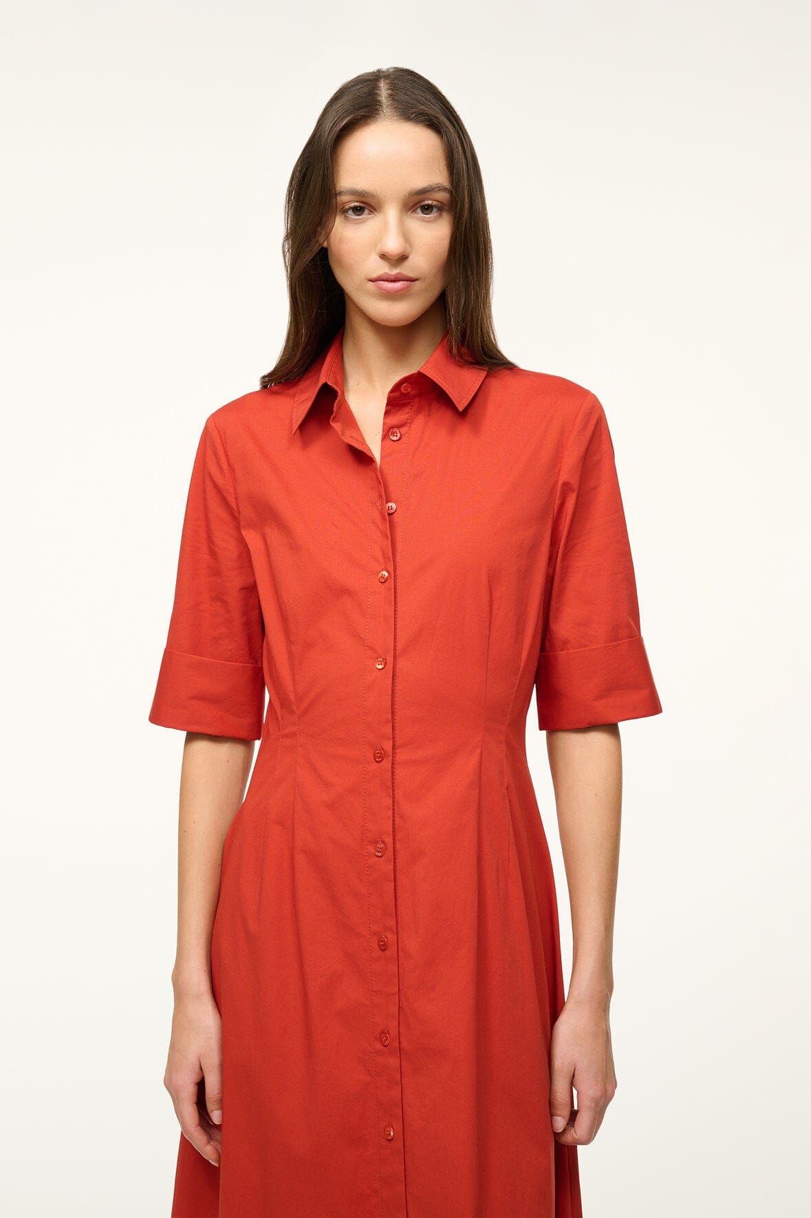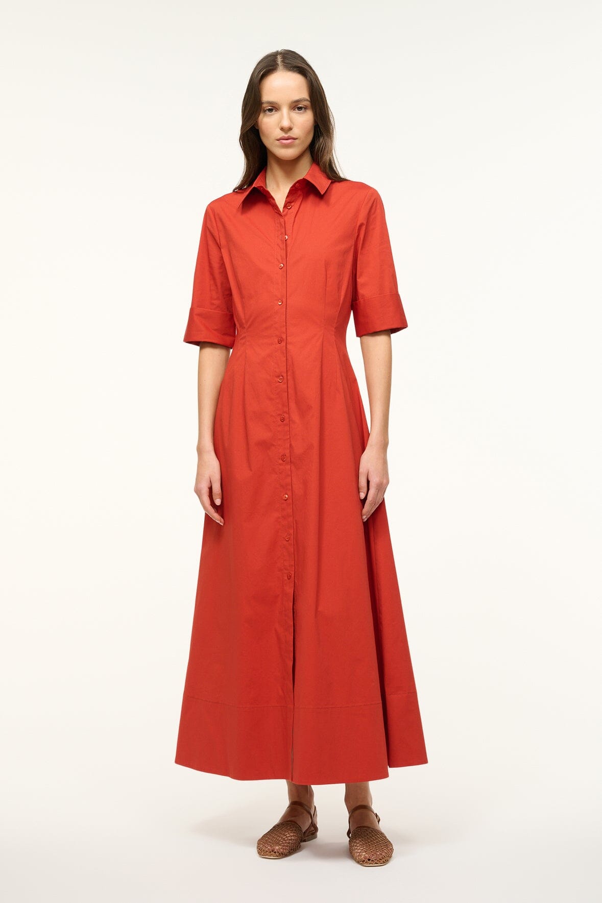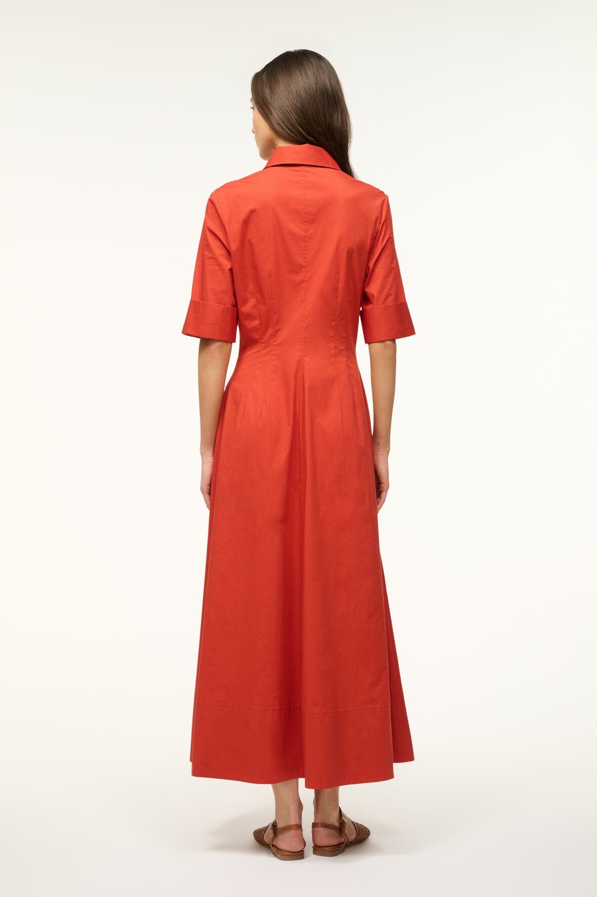 A maxi shirt dress made out of stretchy cotton poplin, the Joan Dress is a modern yet polished take on a classic.