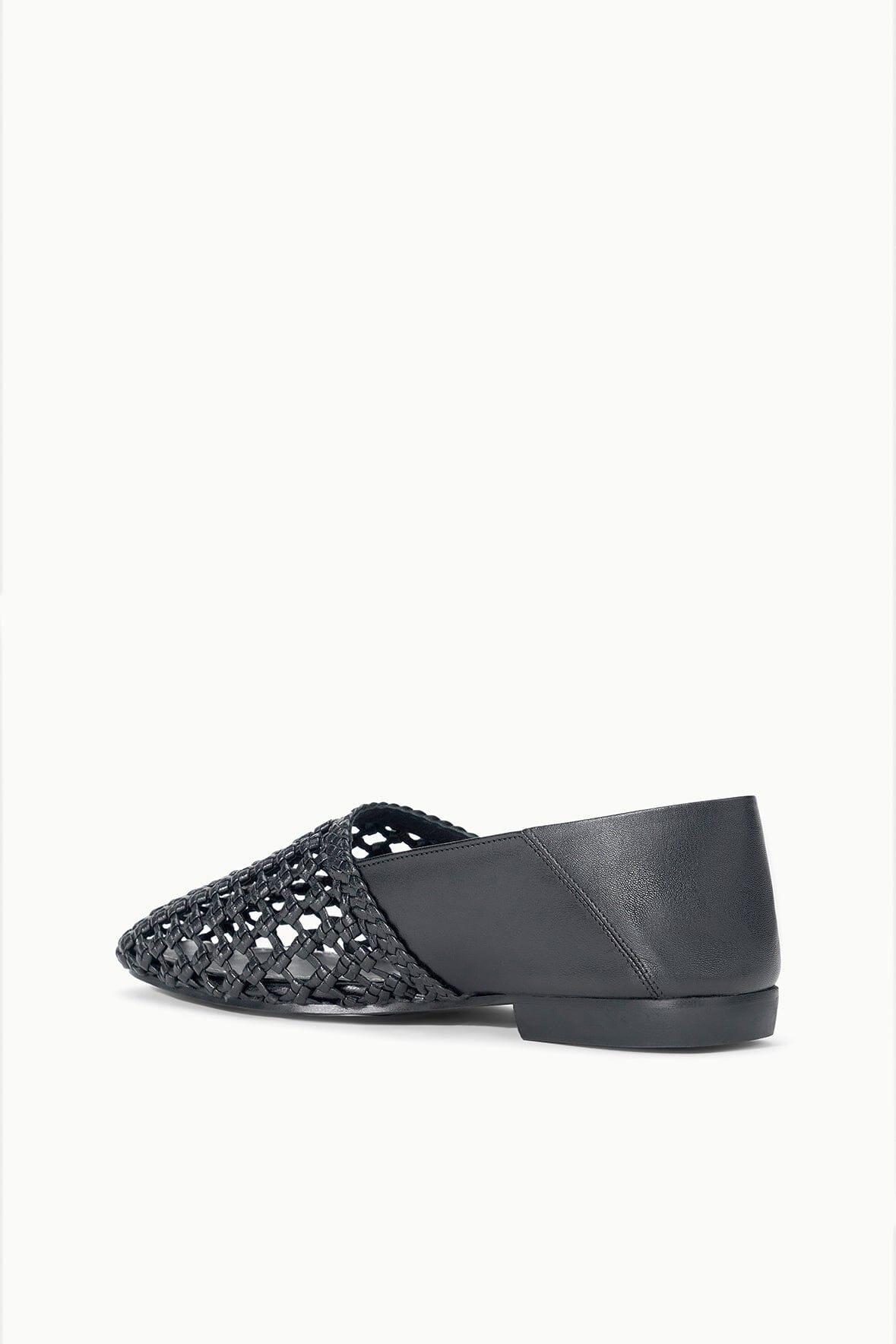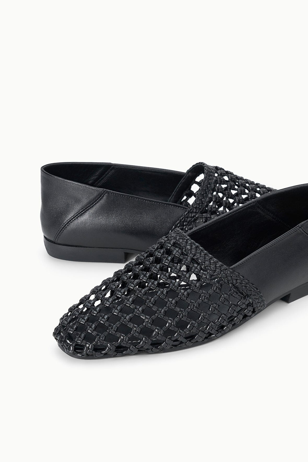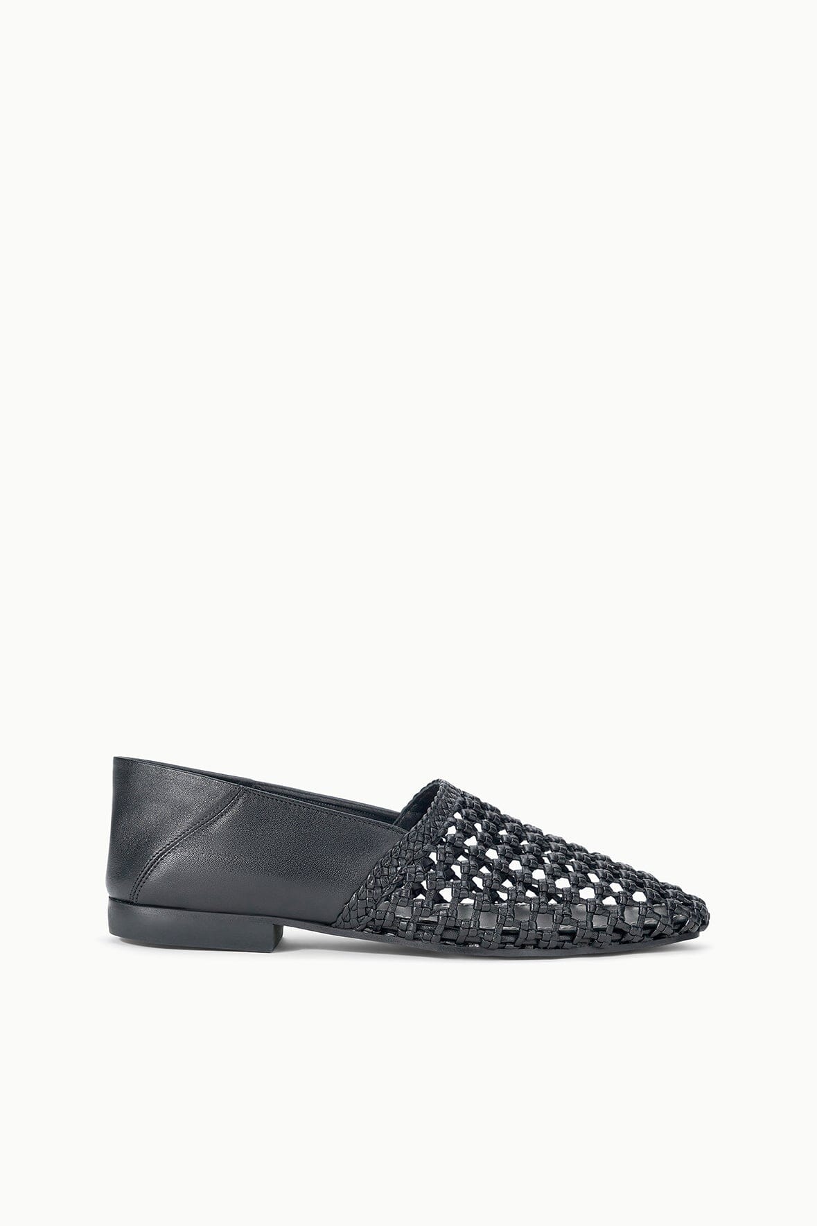 The Joanna Flat in espresso showcases supple leather with an intricate open weave design. The subtle square toe adds contemporary polish while maintaining timeless appeal.