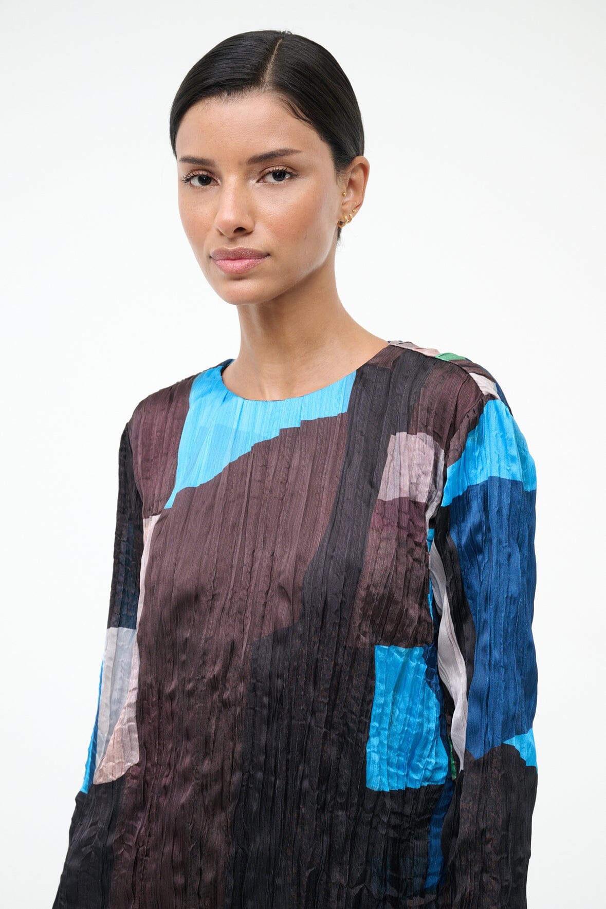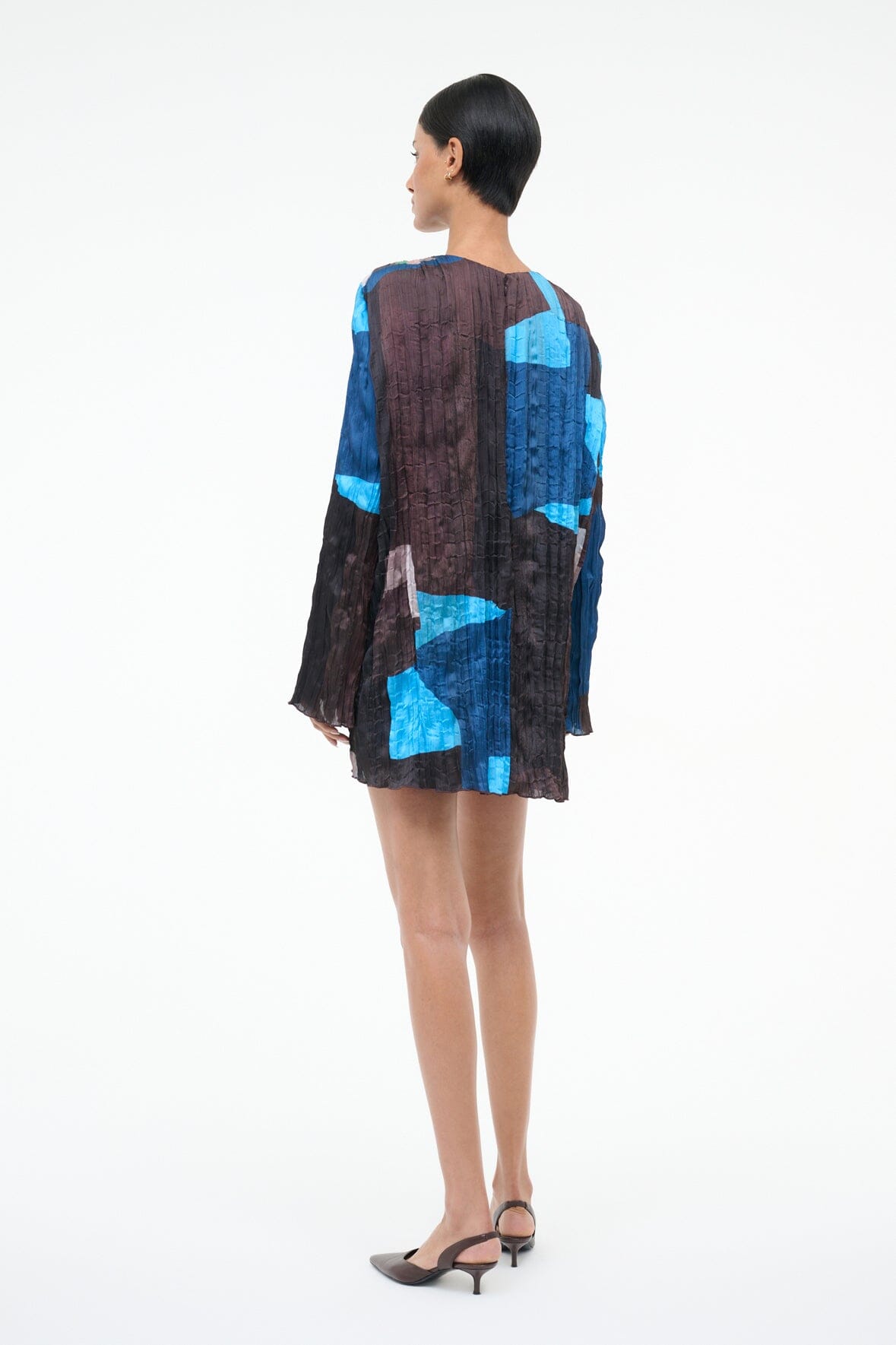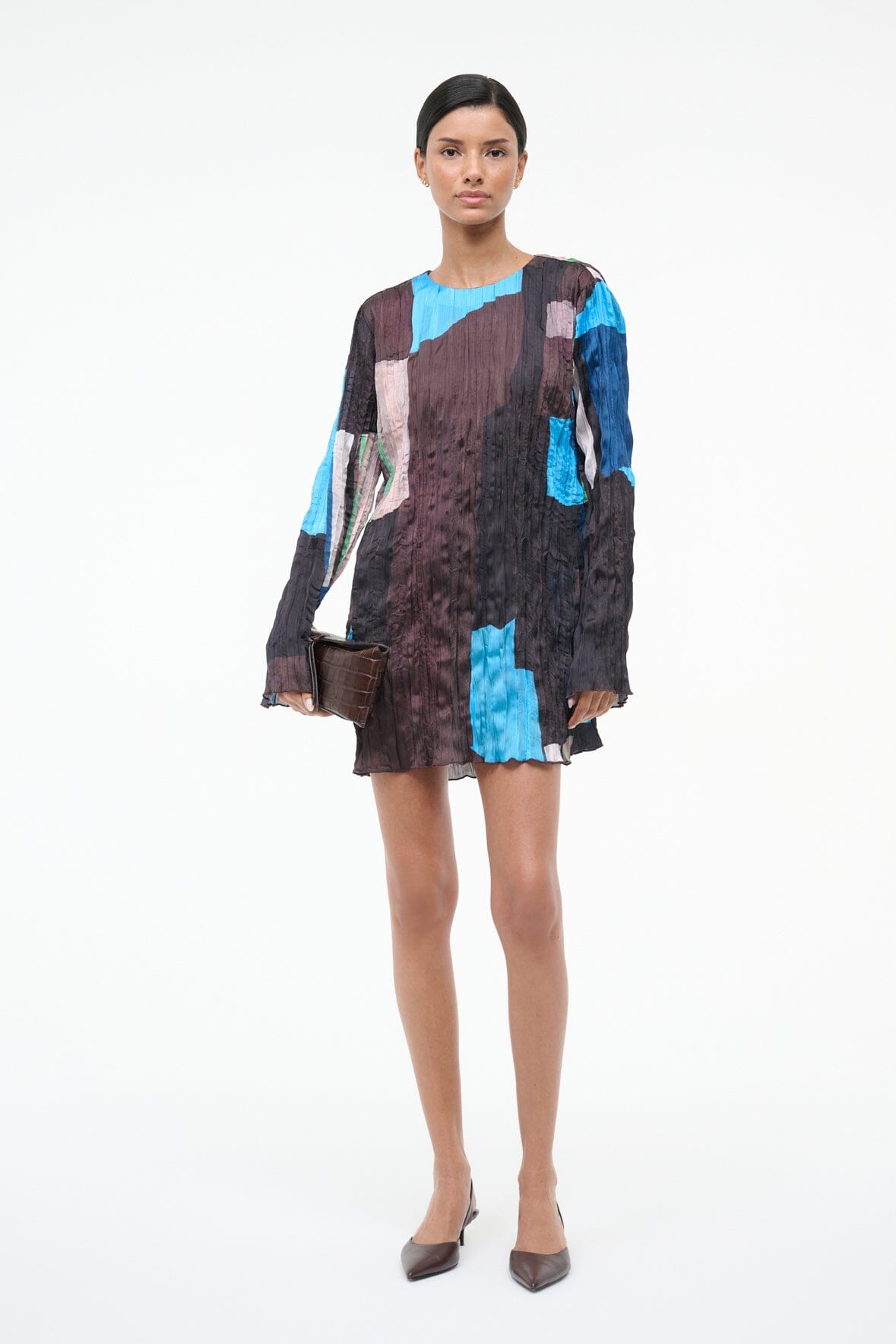 The Kona Dress is a long sleeve mini dress with a round neckline and a straight silhouette.