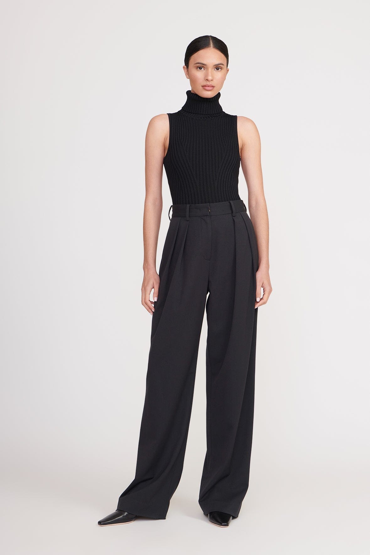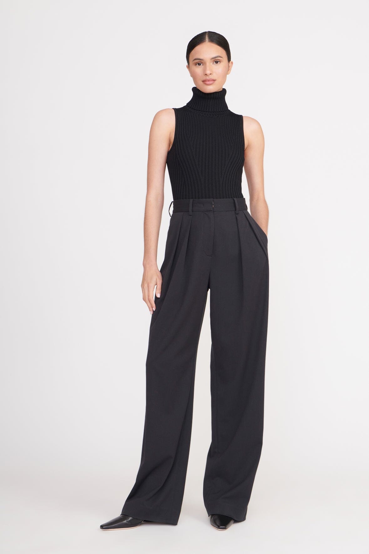 An essential wide leg pleated trouser, the Luisa Pant features two side pockets and a hook and zip closure. This style completes a suit when worn with the matching City Blazer.