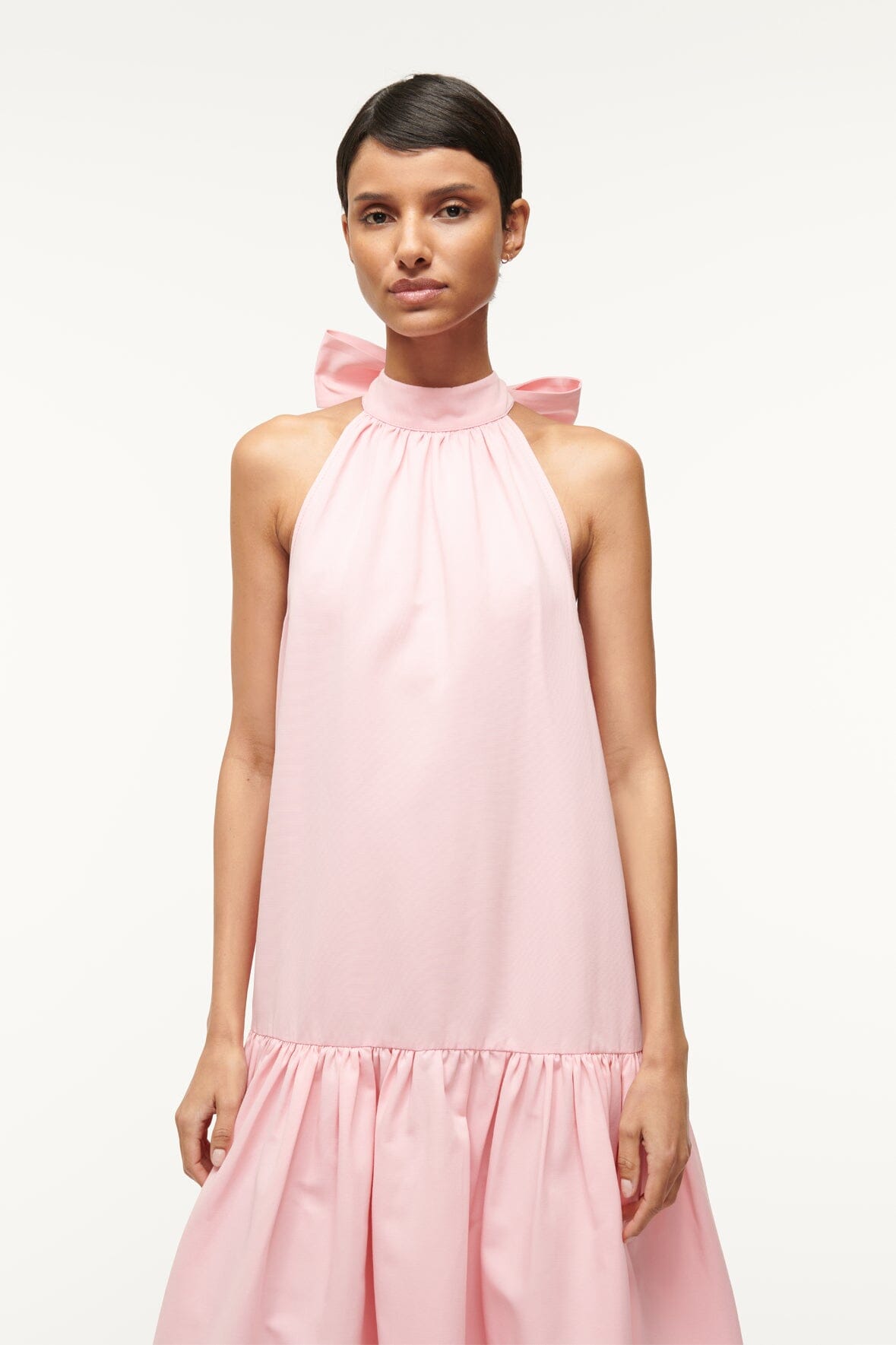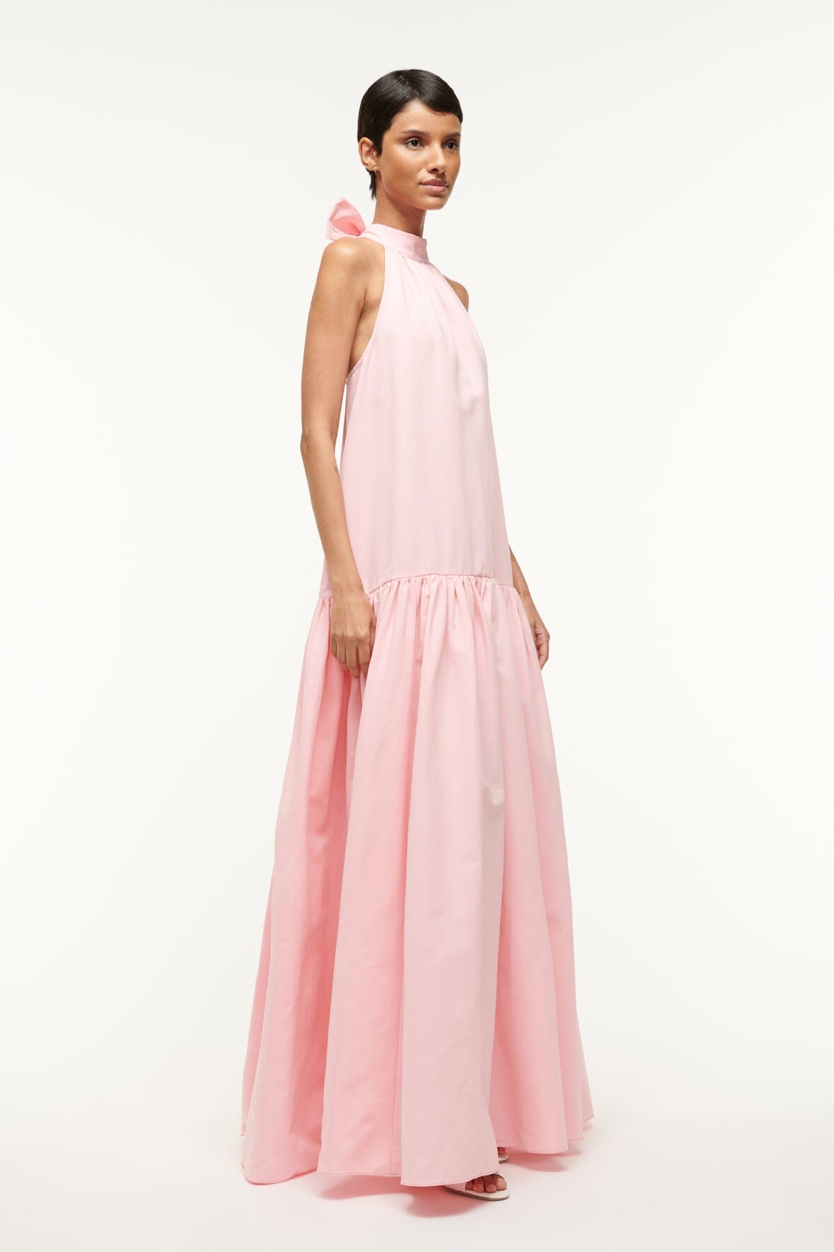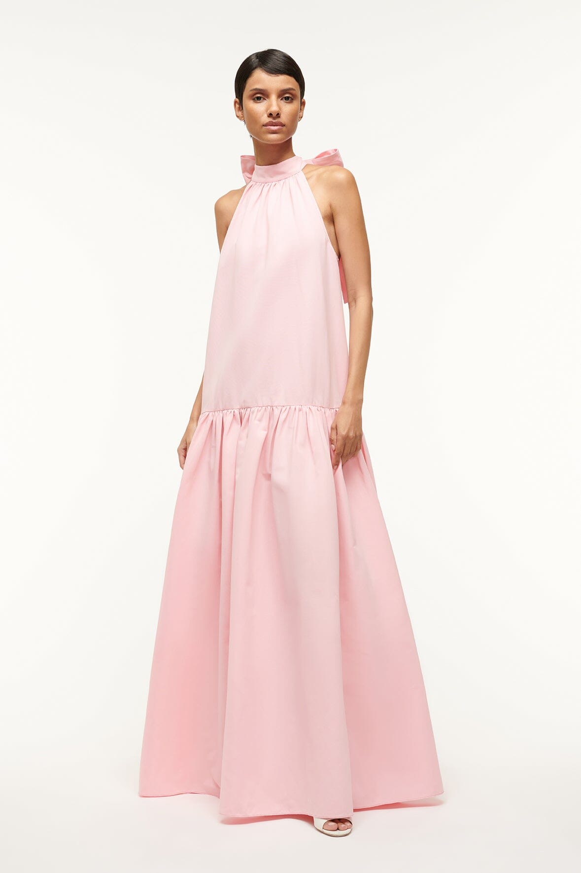 An easy a-line maxi dress constructed out of our grosgrain fabric, the Marlowe features a neck tie detail and tiered skirt.