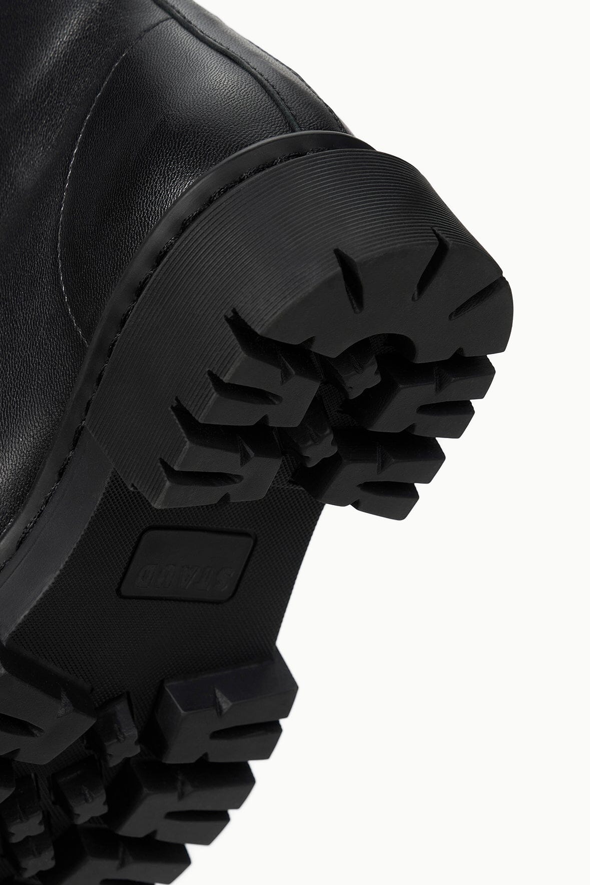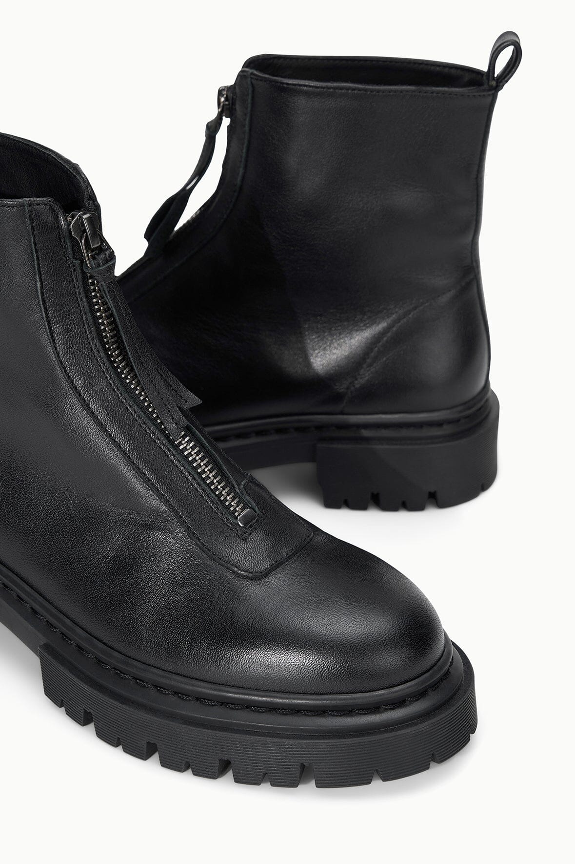 The Miles is a nappa leather combat boot with a zip front, pull tab and an all-weather lug sole.