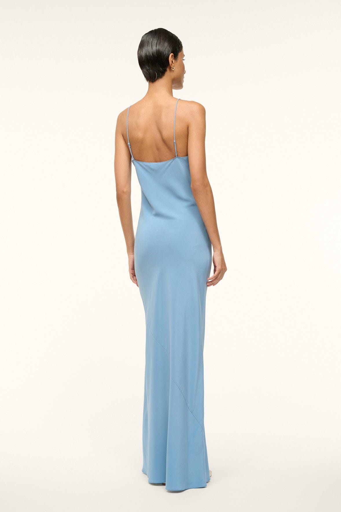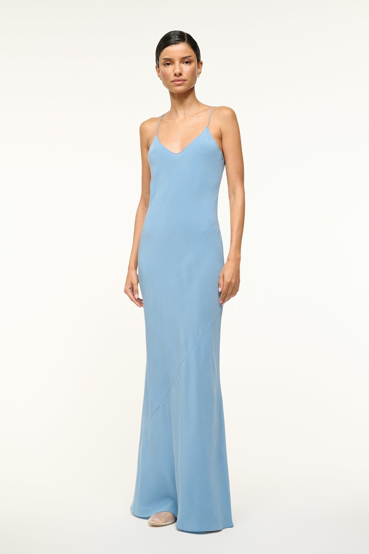 A classic slip dress crafted from a stretchy silk fabric. The Milner features thin spaghetti straps and a maxi length.