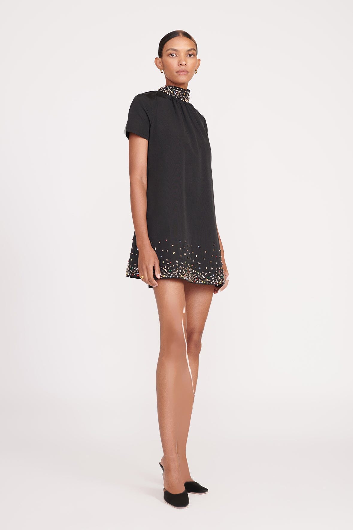 An embellished update to our best-selling Mini Ilana with crystal detailing at the neck. The Mini Ilana features a-line shape, open back, and self-tie neck detail.