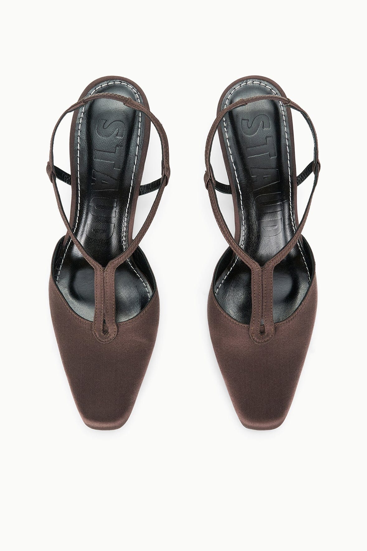 The Monroe heel is a vintage-inspired slingback with a long square toe and t-bar detail.