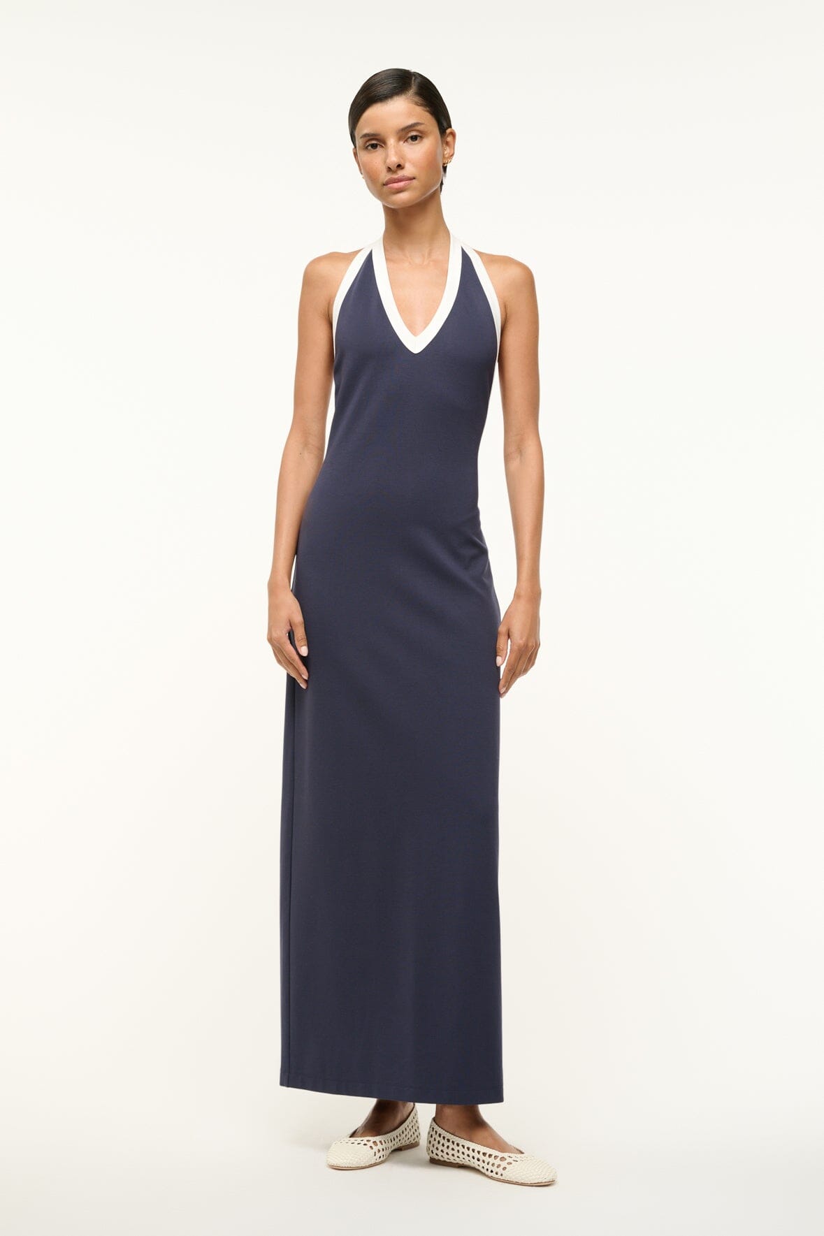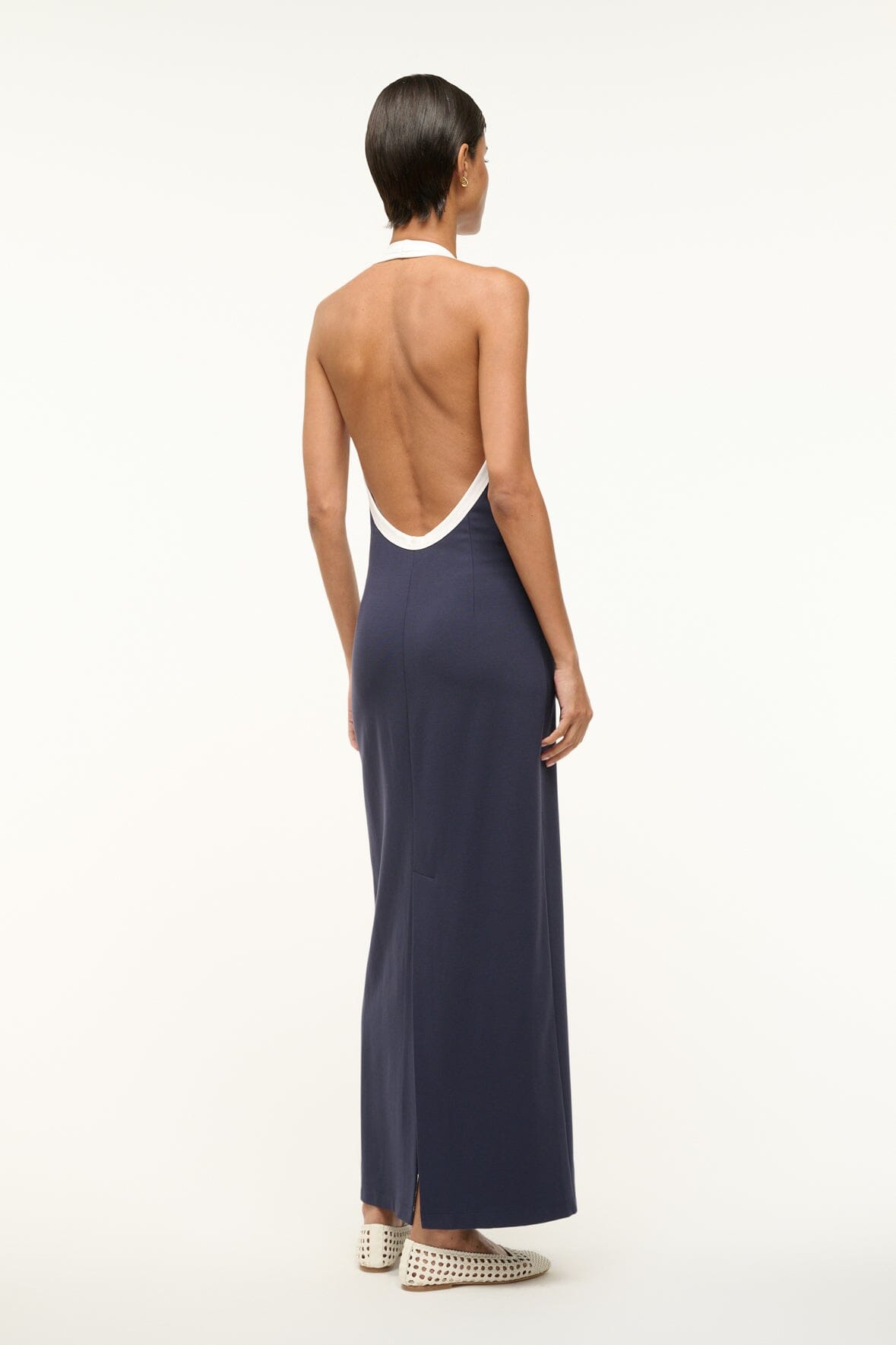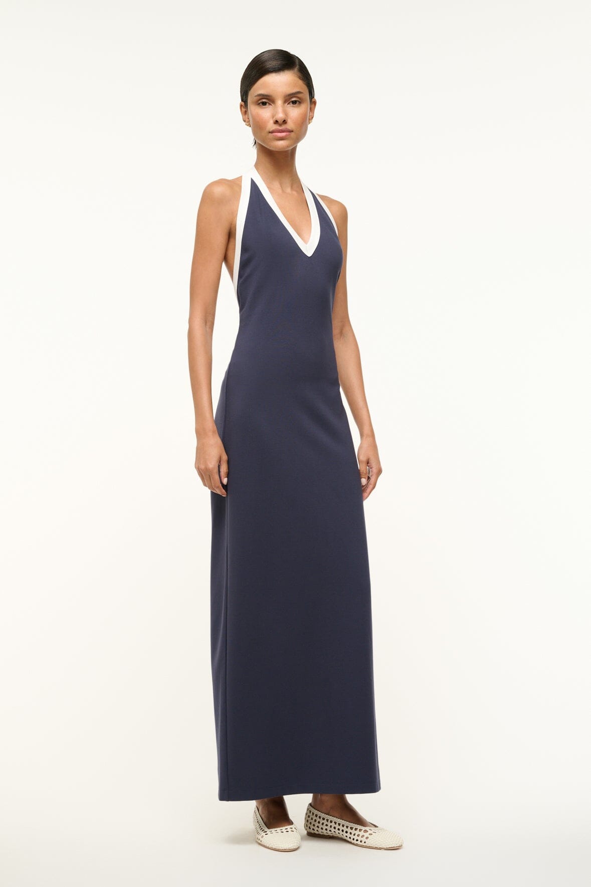 A maxi halter dress with low cut back, the Naomi is an easy throw-on-and-go style made from a stretchy ponte knit.