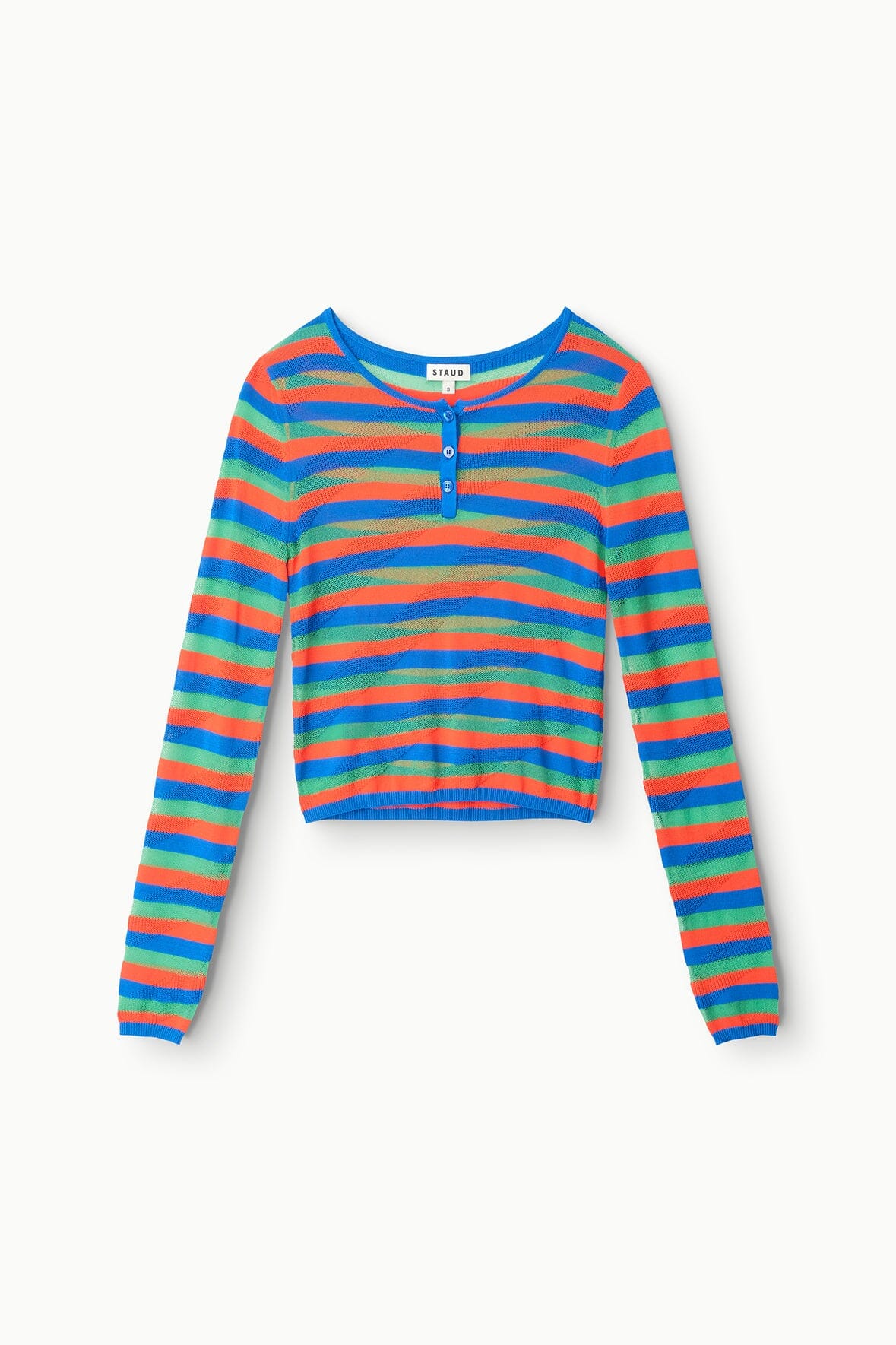 The Roscoe Top is a long sleeve shirt in our playful Montego stripe. This style has sheer and opaque alternating stripes for a Summertime look.