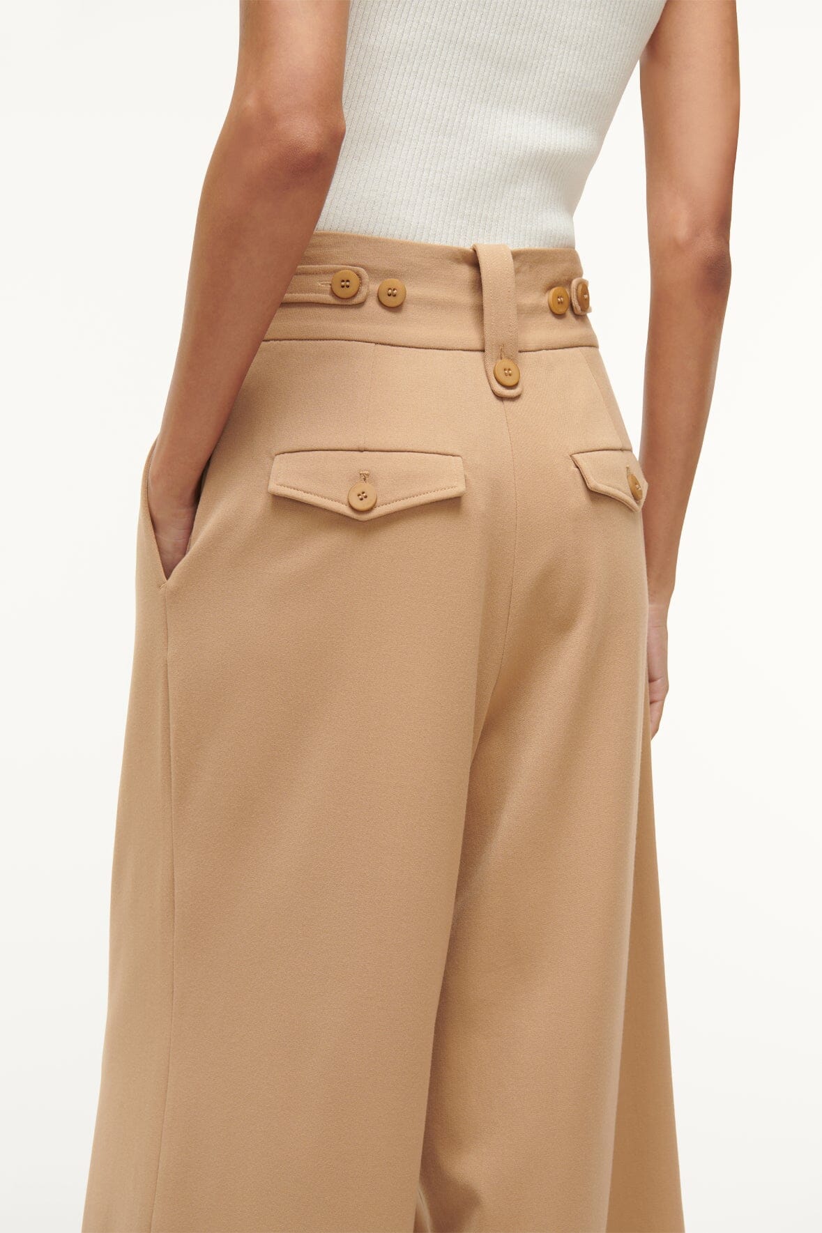 A wide leg pleated pant made out of our soft tailoring fabric. The Ruth features wide belt loops, an extended waistband and hits at the ankle.