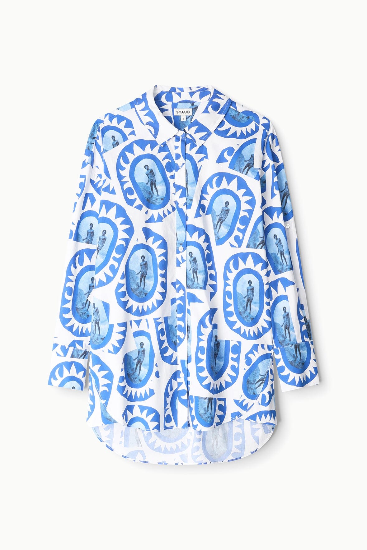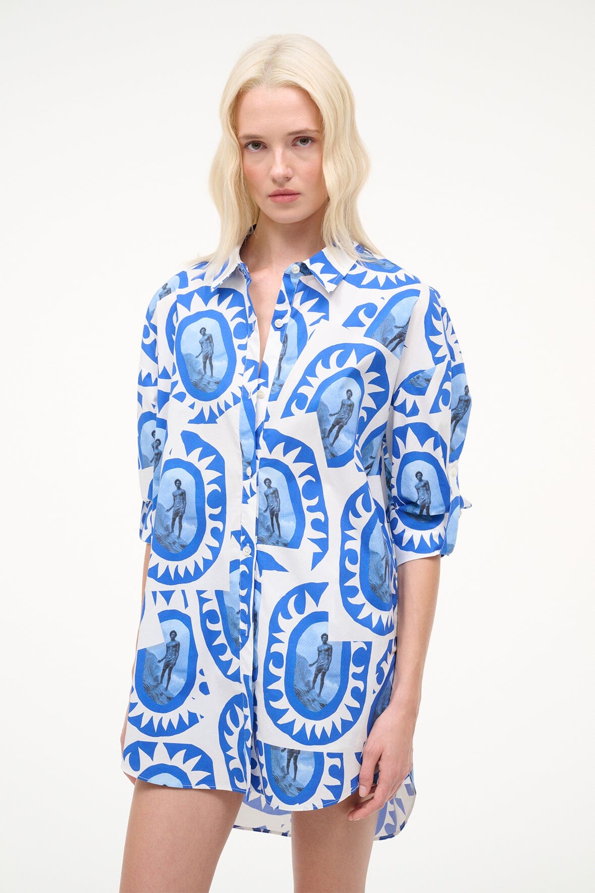The Sandbar Top is a boxy button-up collard shirt with a curved shirt tail. This style can be worn as a two-piece set with our Paddle Short and can be worn casually or as a swim cover-up.
