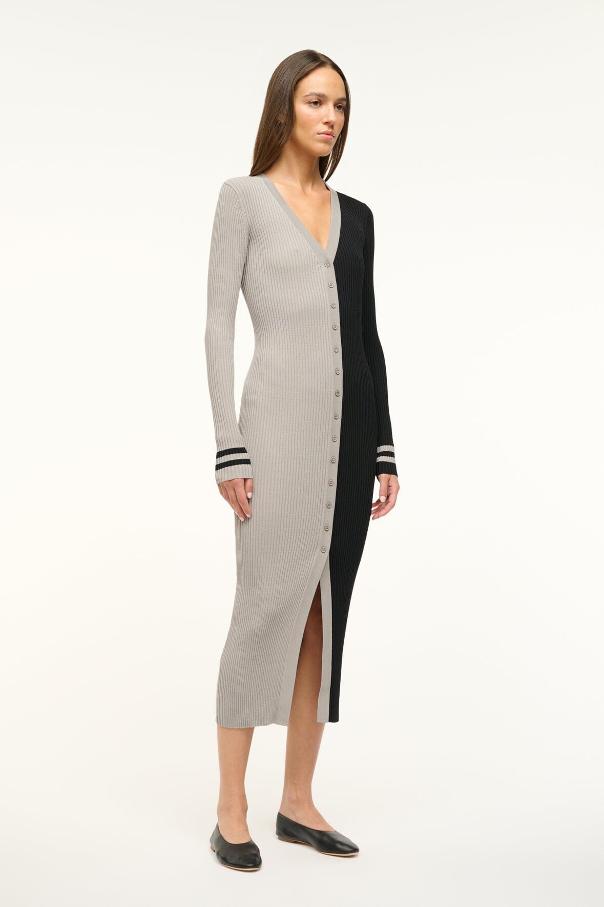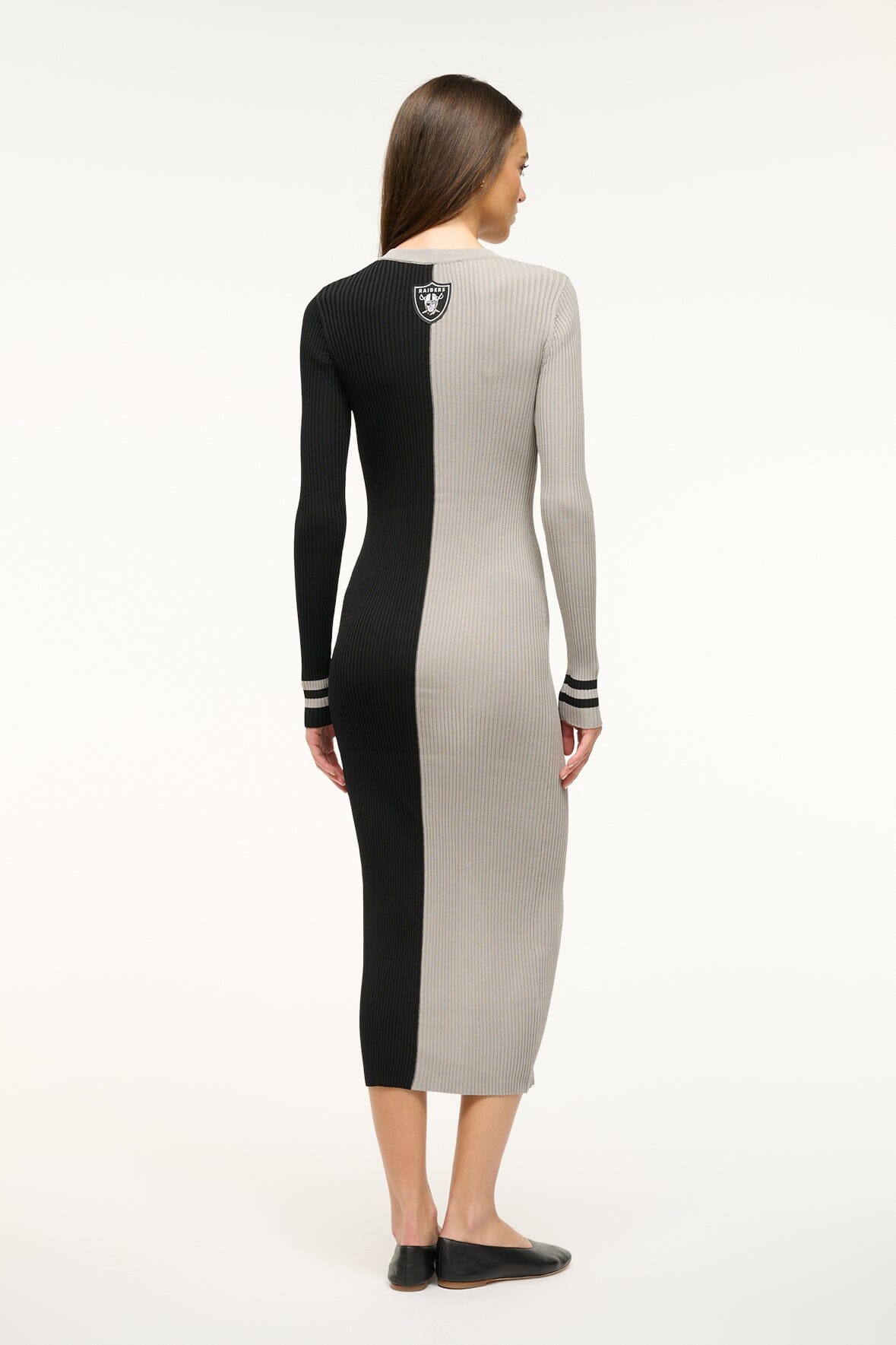 Our signature style, the Shoko Sweater, is updated to support your favorite NFL teams. The NFL STAUD Shoko Sweater is made out of our stretchy, comfortable compact rib knit fabric, and can be worn as a cardigan or a dress. This special capsule features our signature color blocked pattern and a NFL team logo on the back.