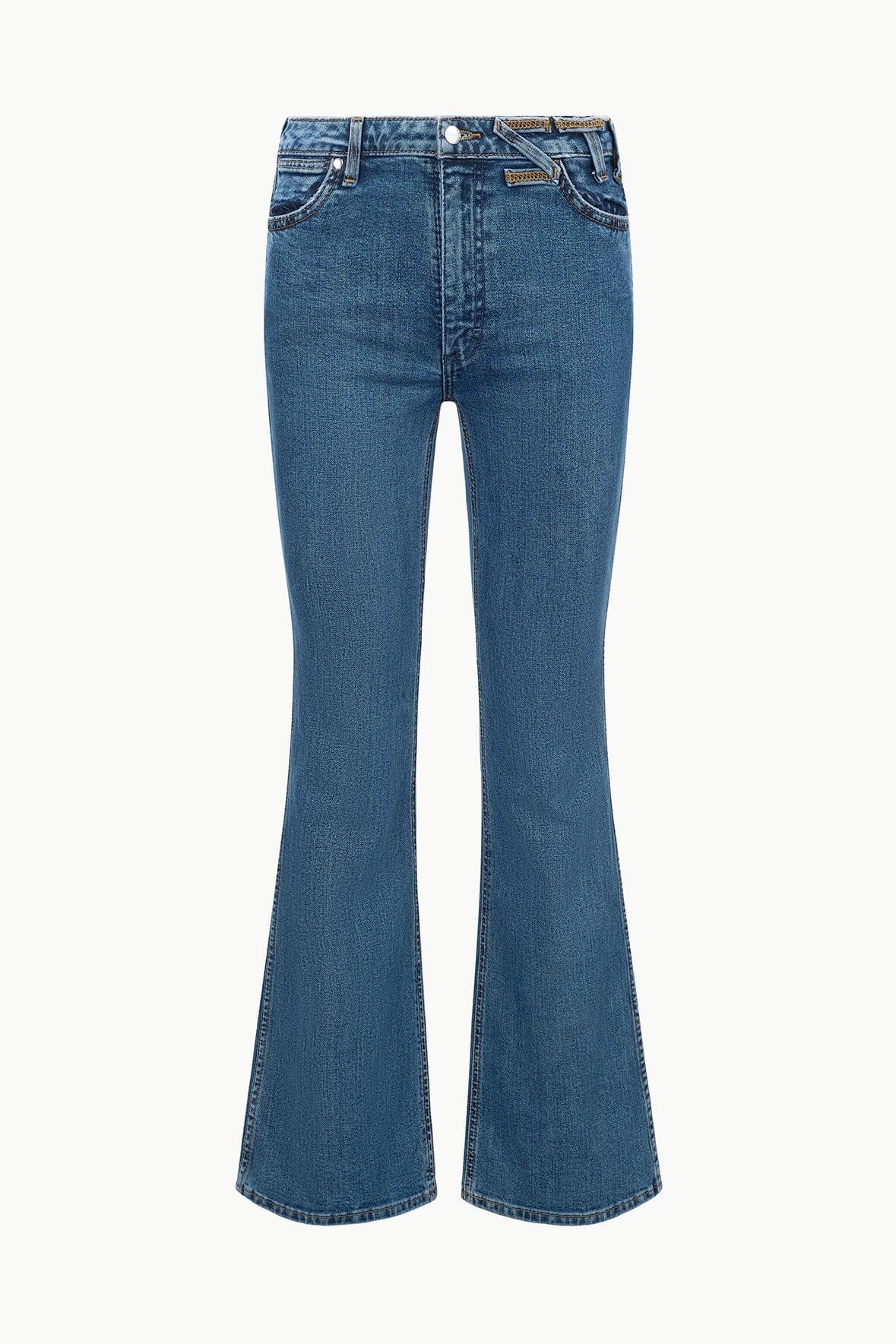 The Must is our flattering snug fit that’s fitted at the hips and flares just past the knee. This mid-rise jean sits below the natural waist and features our STAUD belt loop detailing.