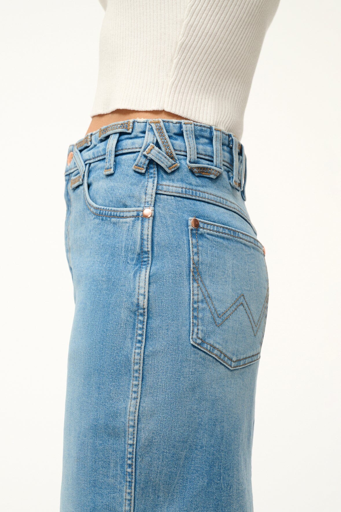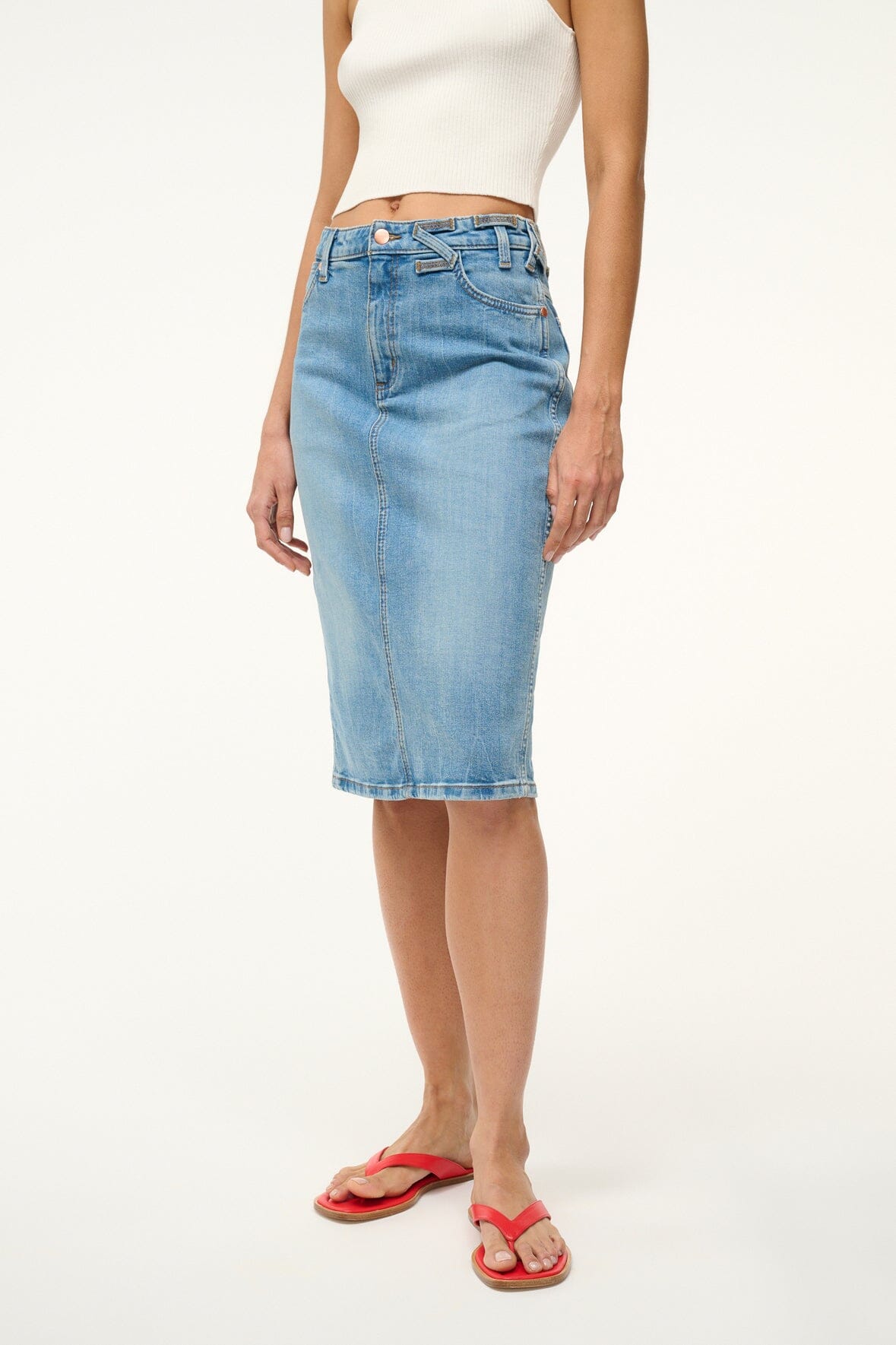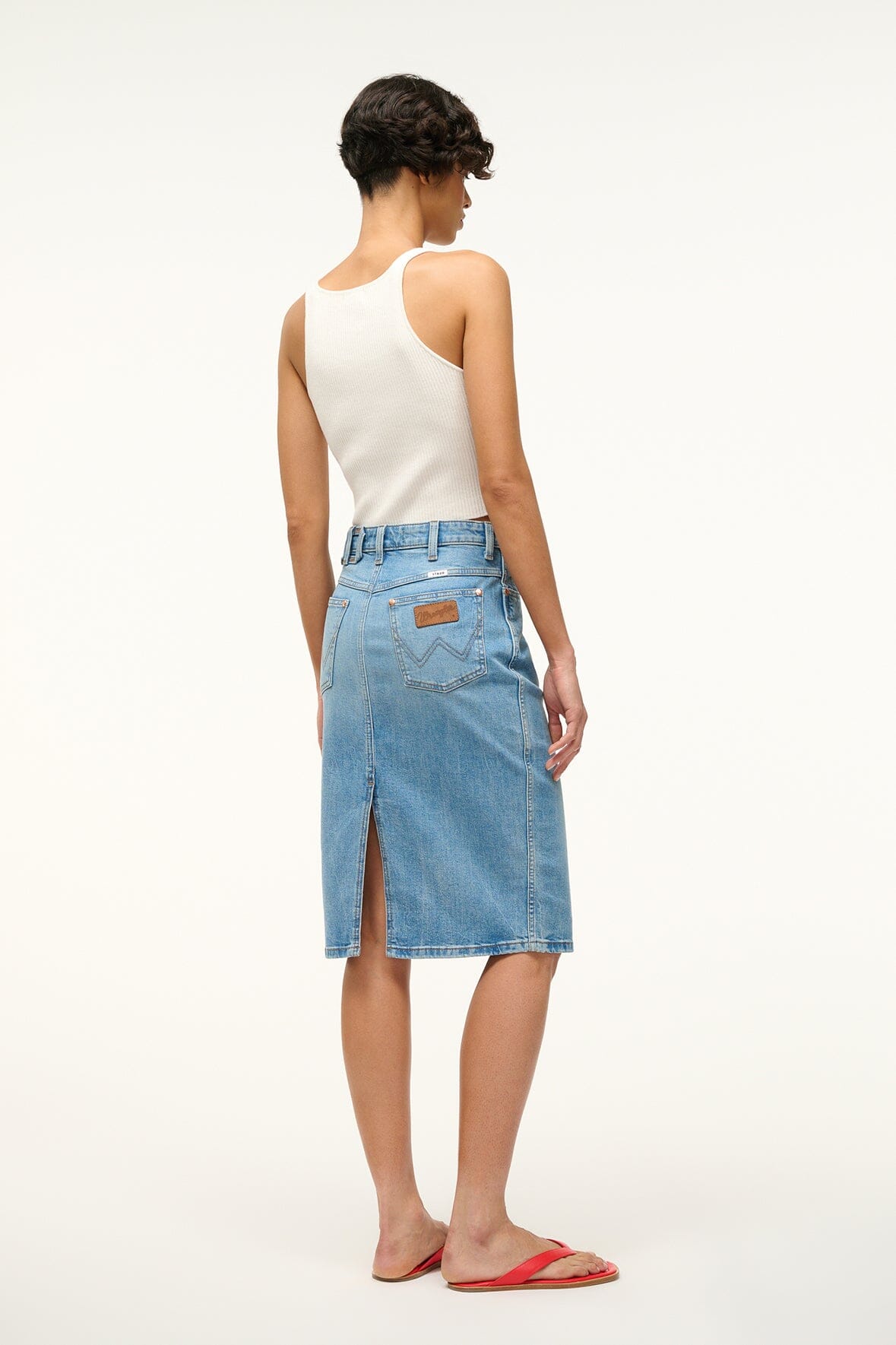 STAUD + WRANGLER THE PENCIL SKIRT MID BLUE