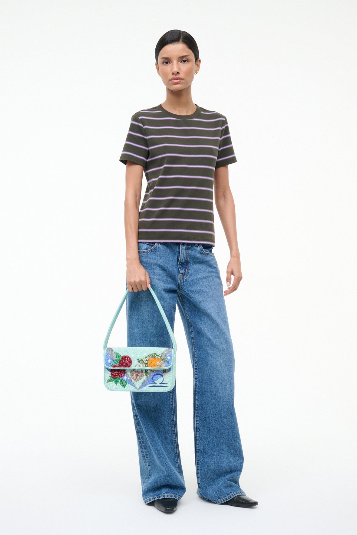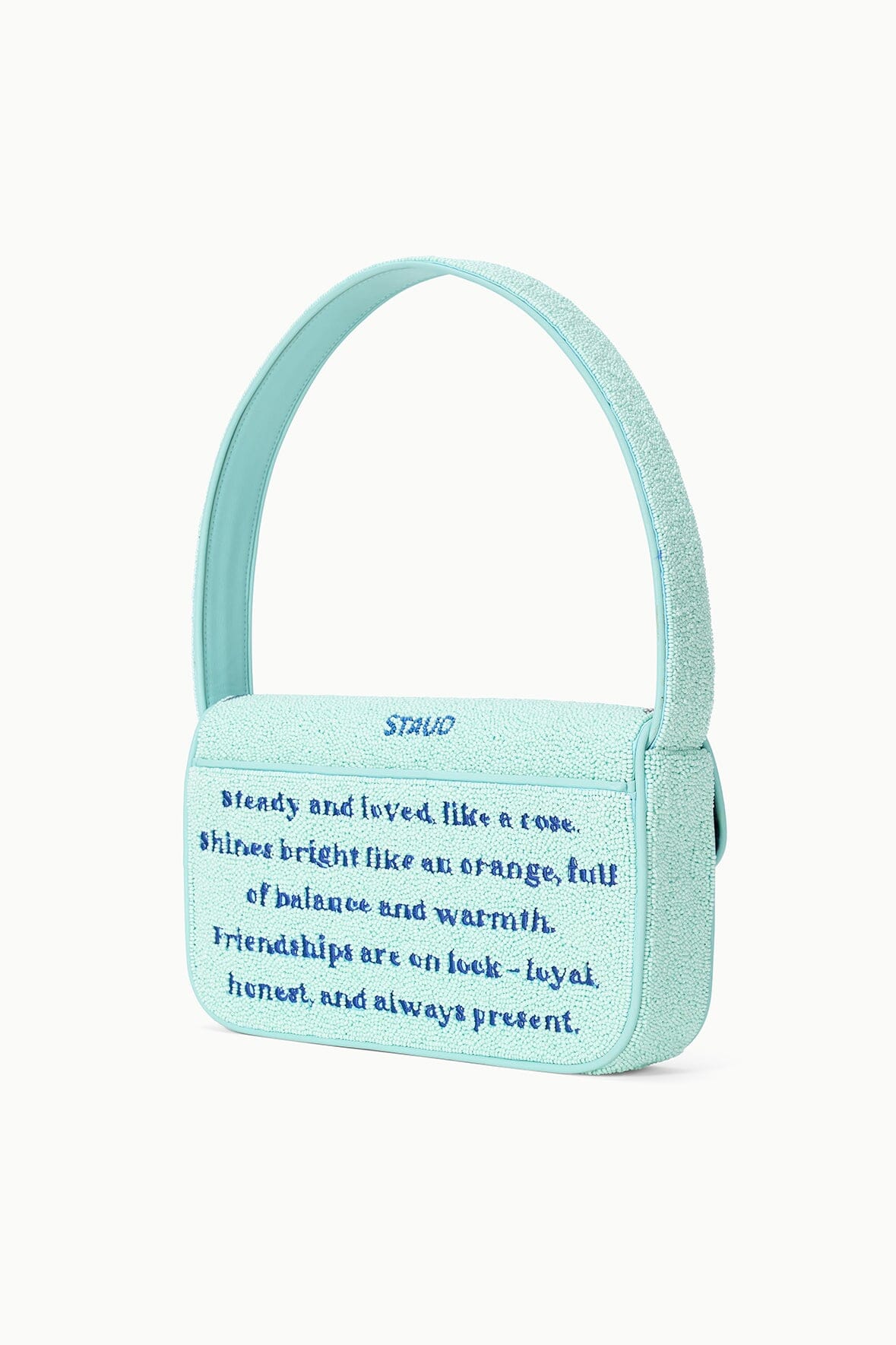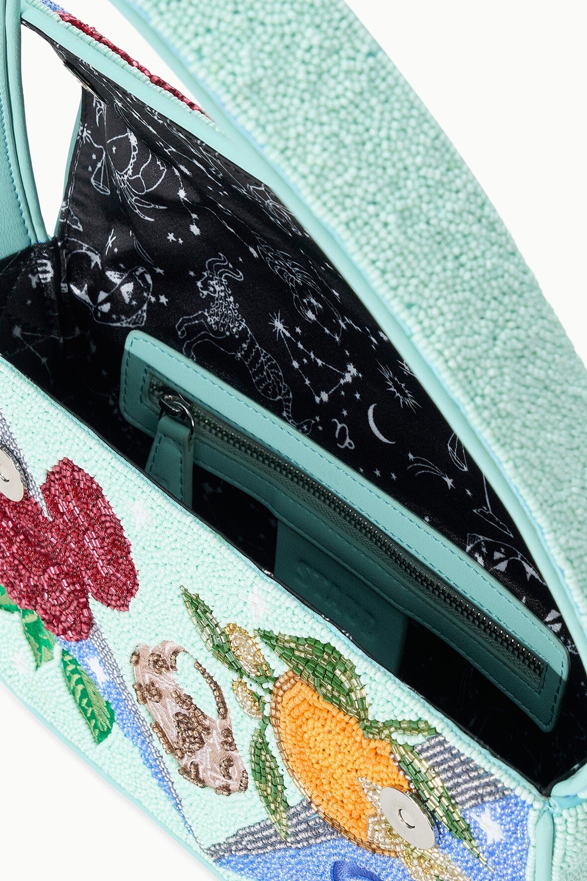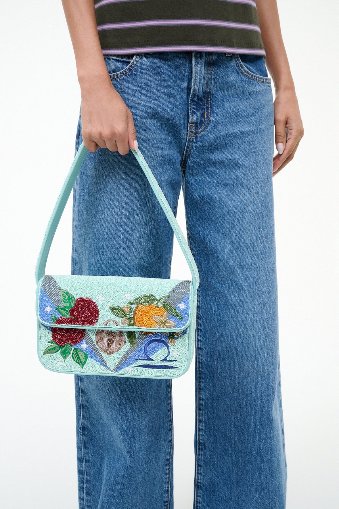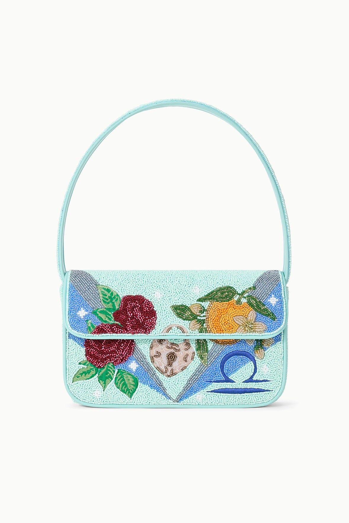 To celebrate new beginnings, we brought back our limited-edition Zodiac Tommy Bags. This style is hand beaded and features vegan leather piping, a magnetic snap closure and has a pocket on the back.