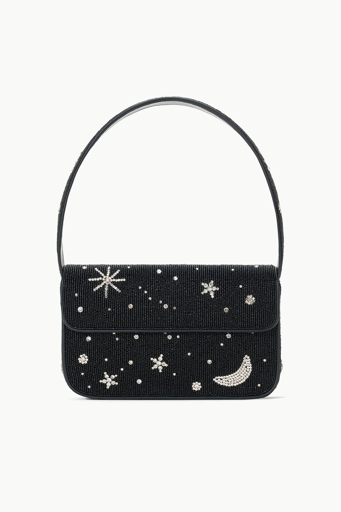 Our best-selling, hand-beaded shoulder bag has been updated in a constellation pattern to match our signature beaded Le Sable Dress. The Tommy features vegan leather piping, magnetic snap closure and interior satin lining.