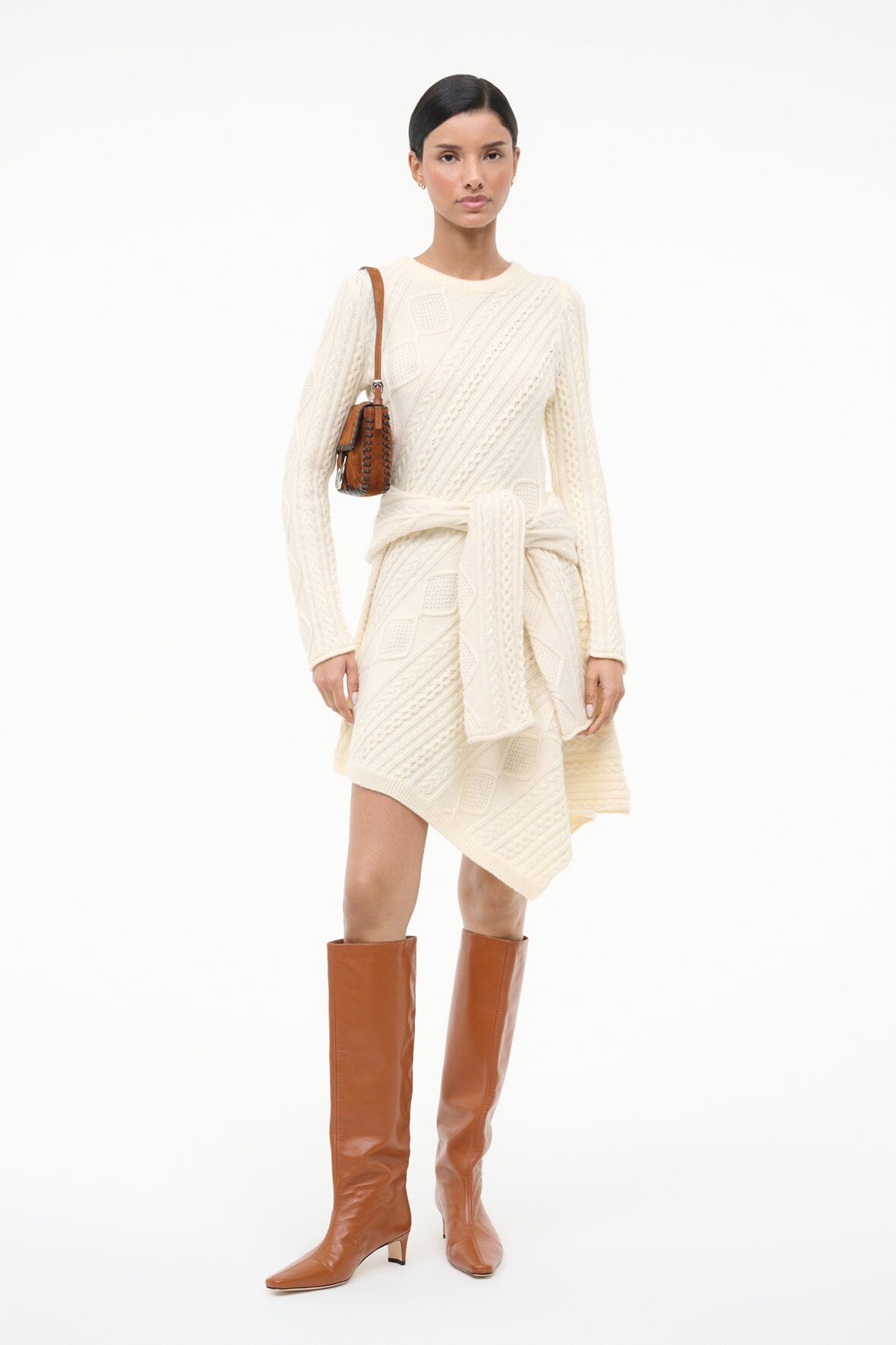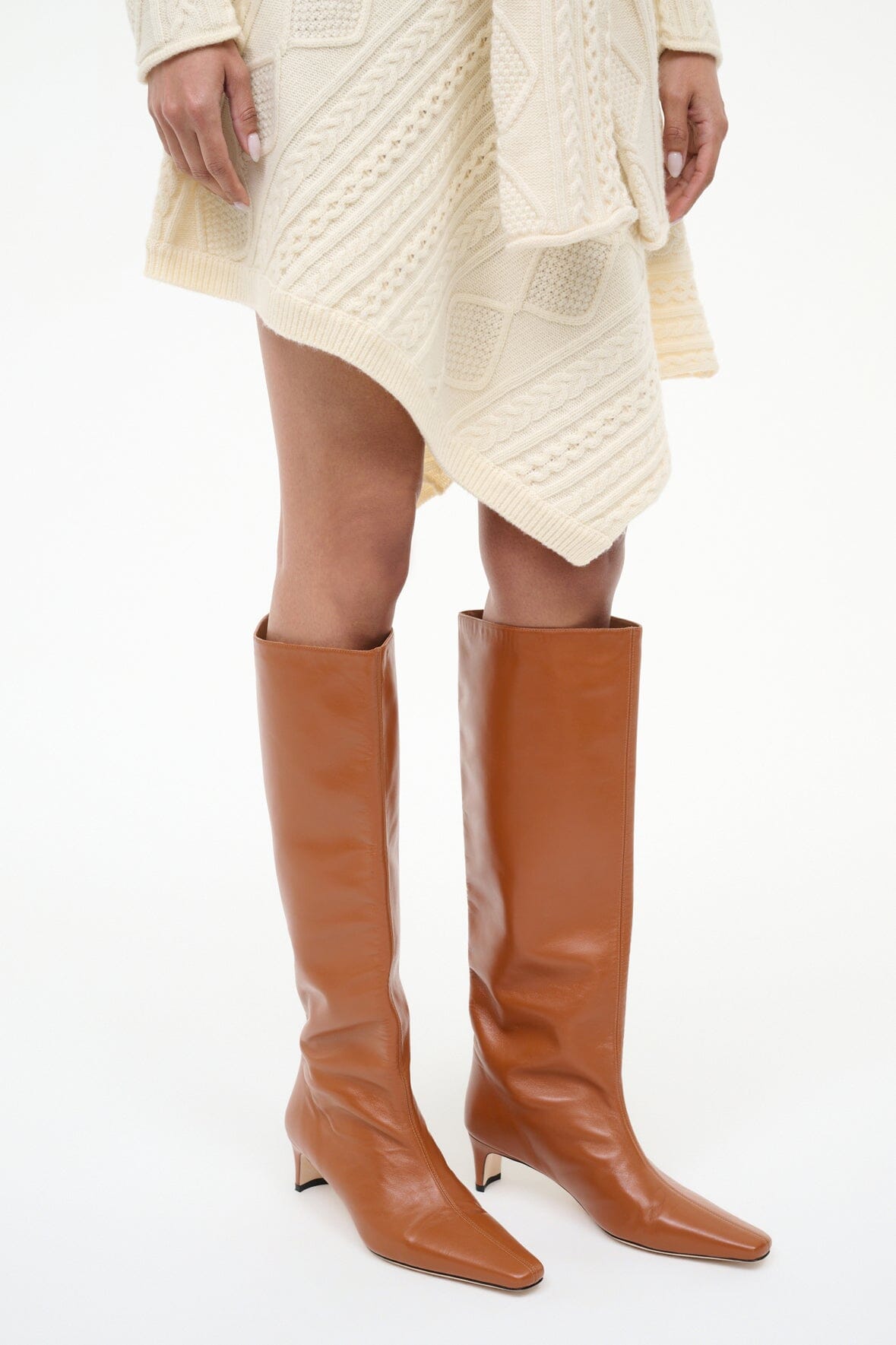 The Wally is a leather knee-high boot featuring a pointed toe and a slim heel design.