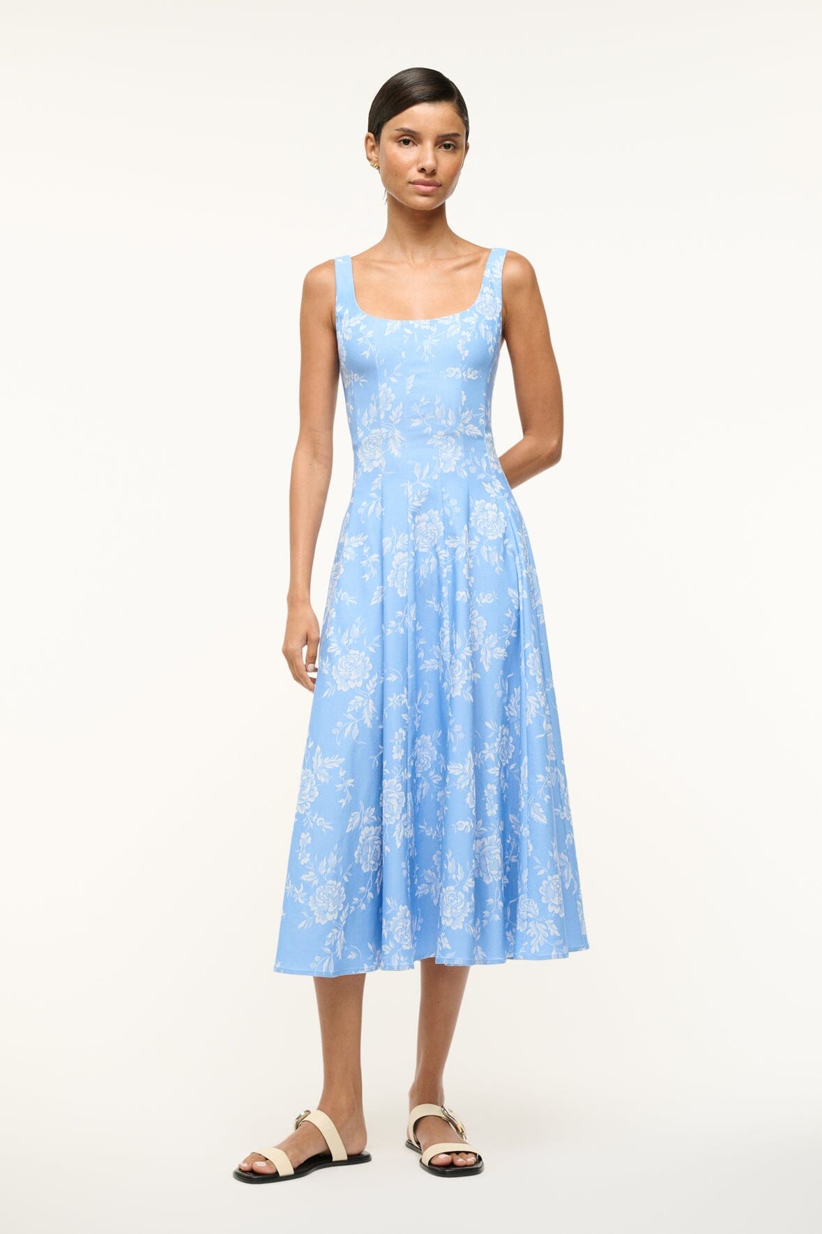 The Wells Dress features a corset-style panel construction to create a flattering, fitted shape through the waist and a full skirt which hits just below the knee. Constructed in lightweight cotton poplin.