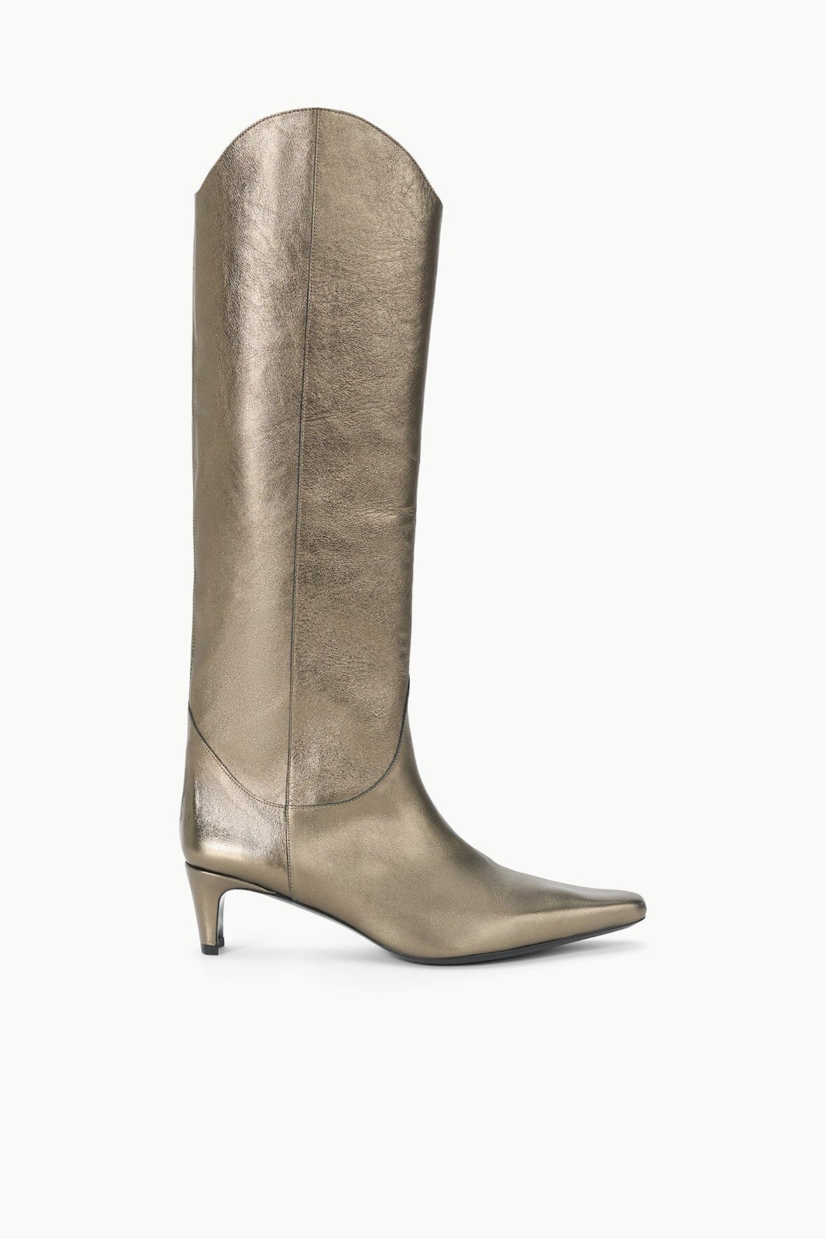 Our signature Wally Boot with a Western inspired curved topline. This style features the classic Wally blade heel and pointed toe.