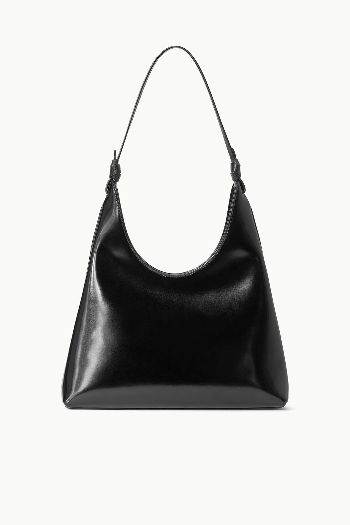The Winona Shoulder Bag is a new everyday handbag silhouette in a shiny polished leather. This style features our signature knotted leather handle and a zip closure.